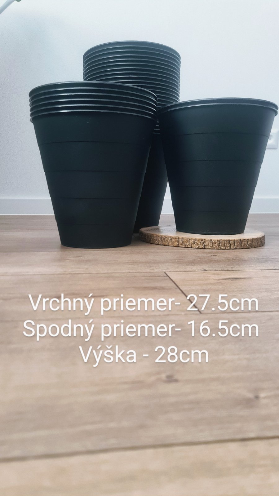 Plastový vysoký kvetináč s prúžkami, farba - čierna, rozmery na fotke. Cena uvedená za 1ks, k dispozícií 25ks.
