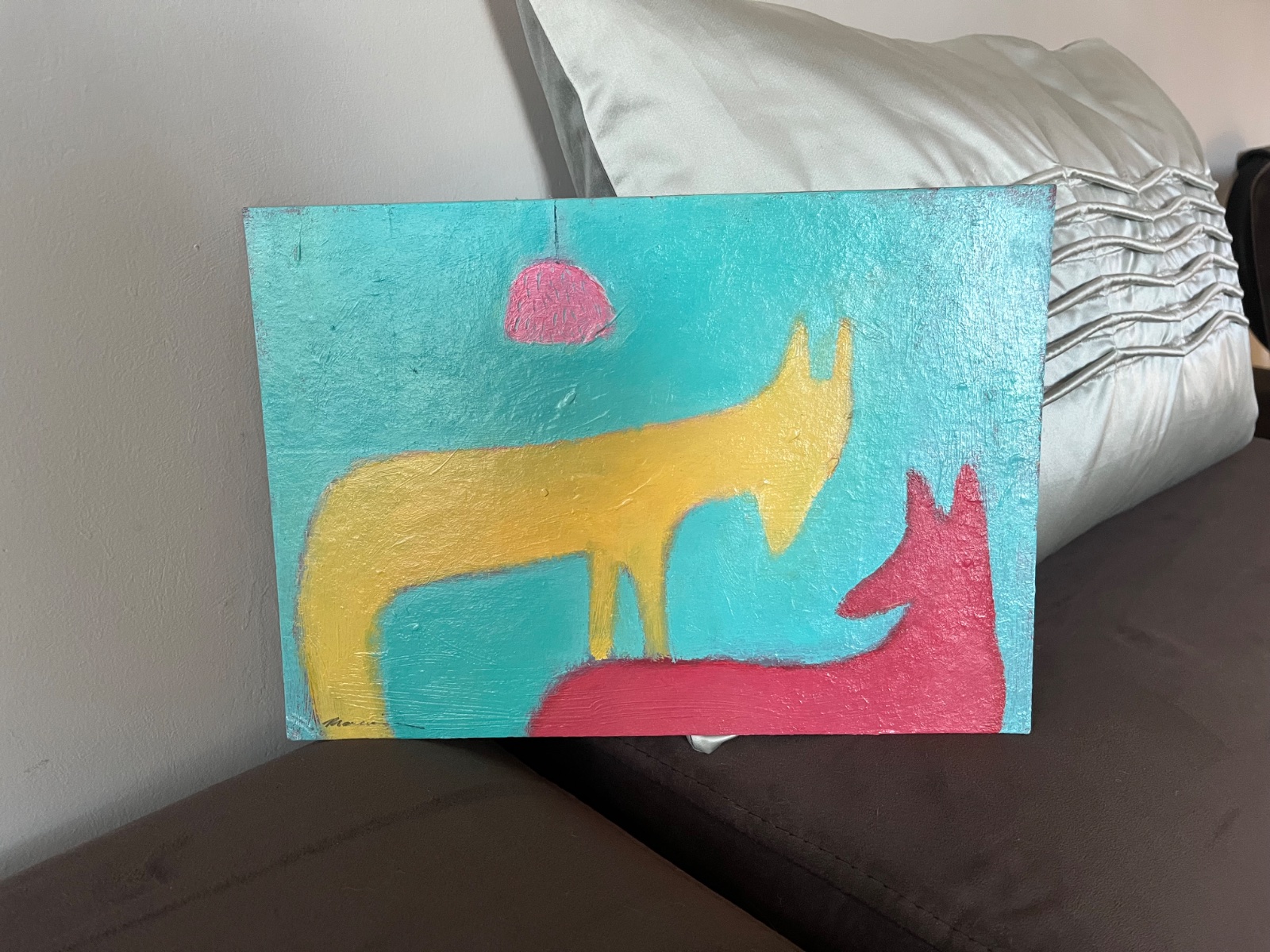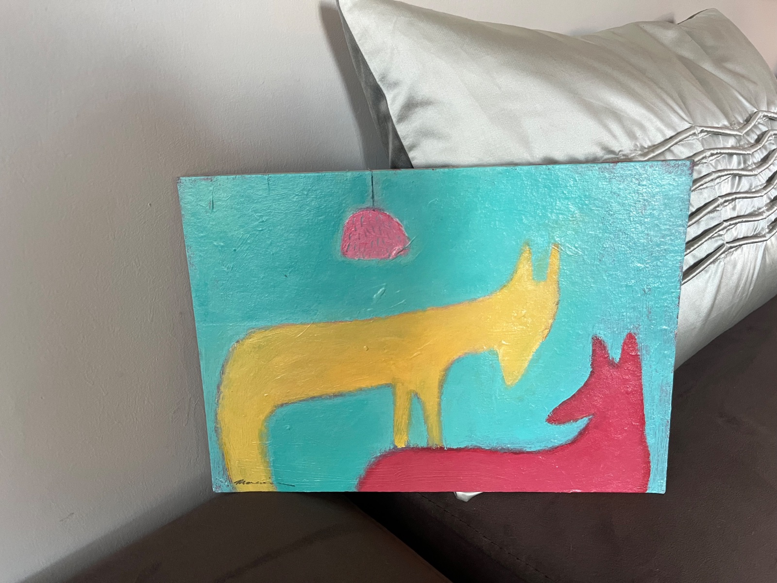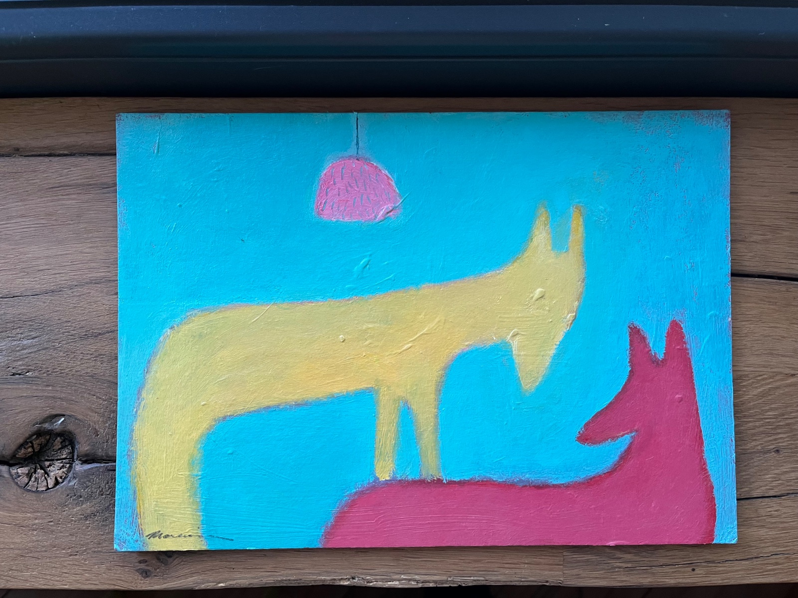 Rozhovor smelý pod lampou nesmelou.Akrylmalba na kartóne,sign.Martina Miženková Treba zarámovať