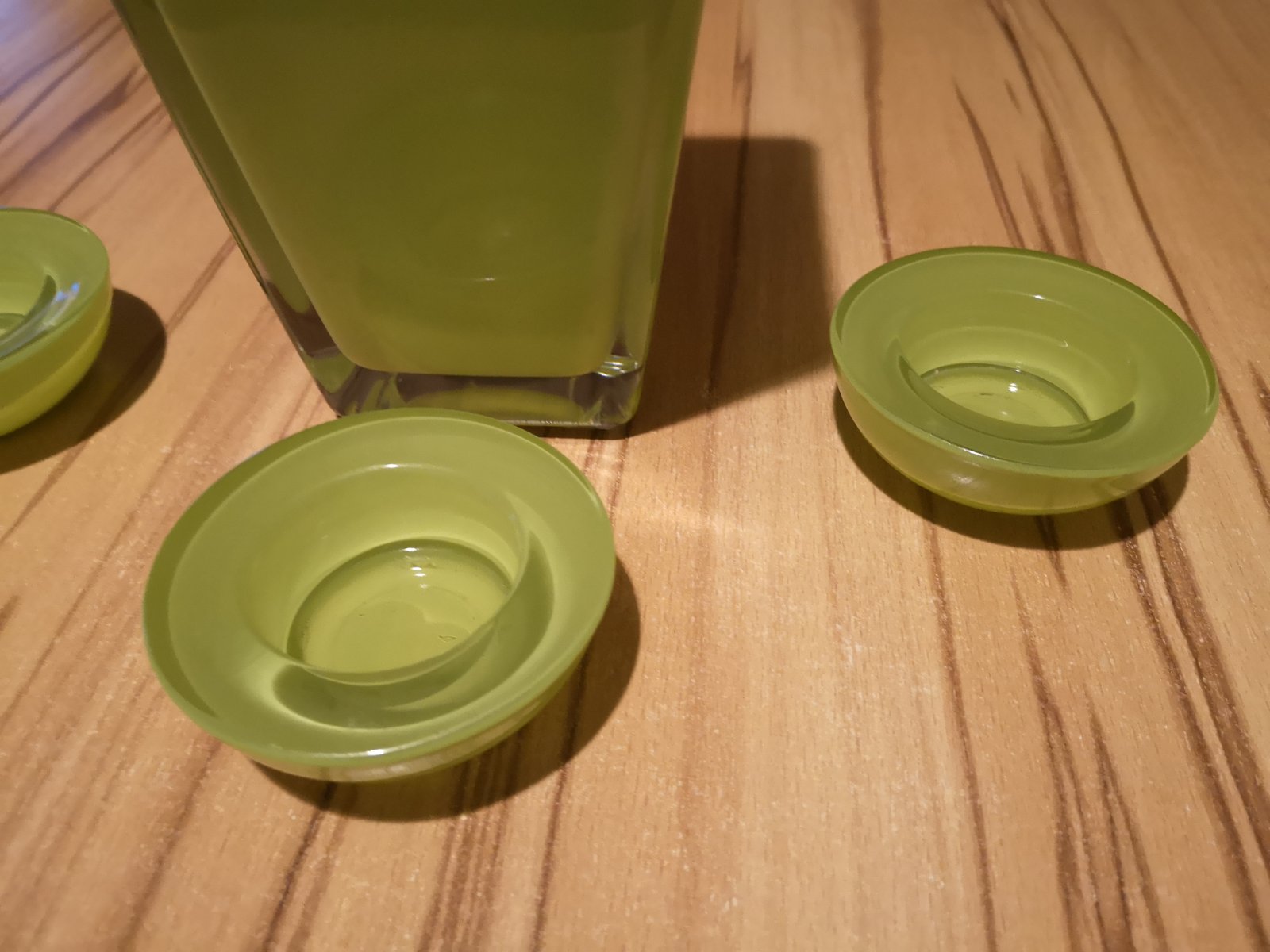 Krásna zelená sklenená váza + 3ks zelených sklenených svietnikov na čajovú sviečku. Rovnaká séria - kupované v Jysku.