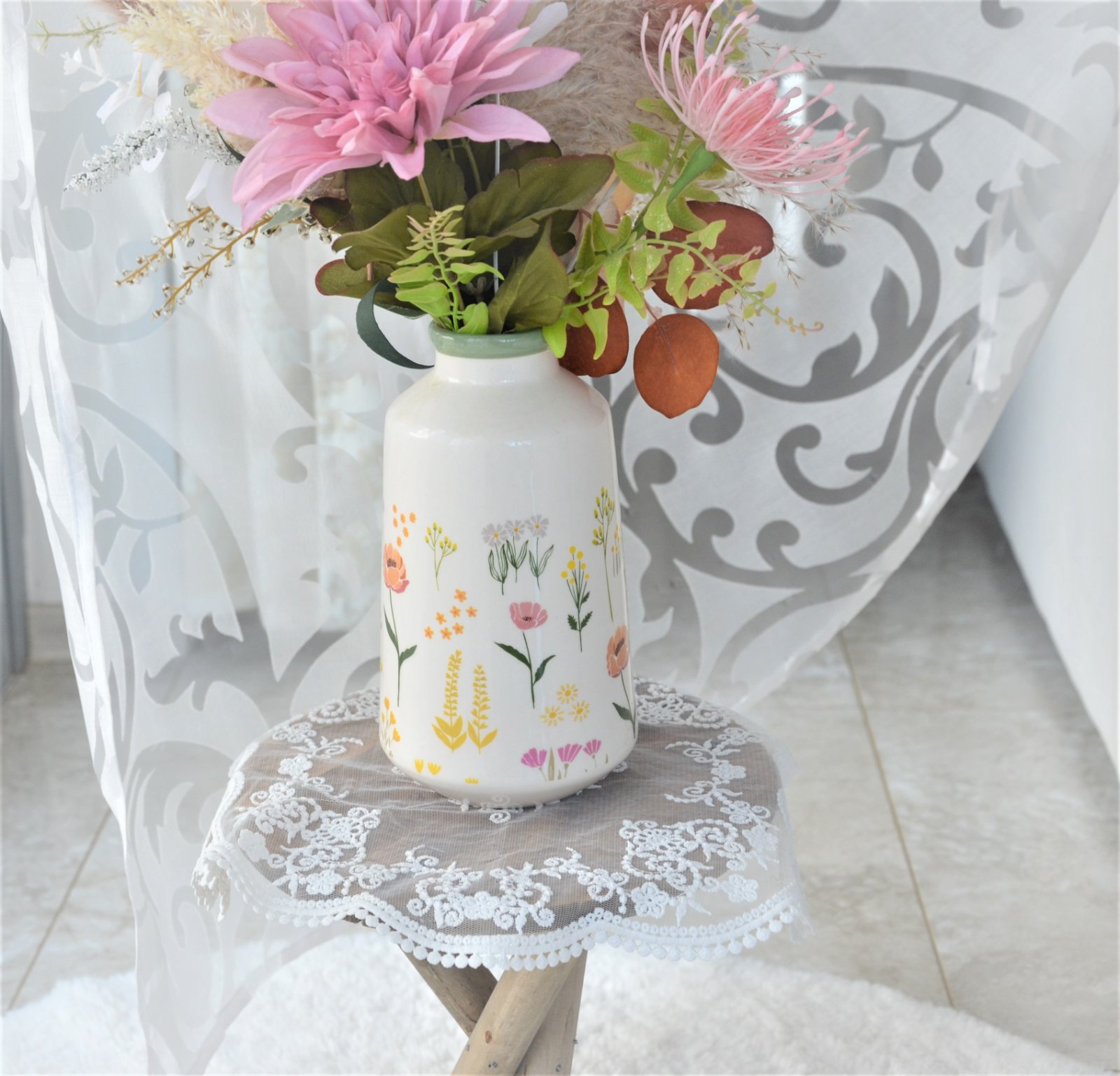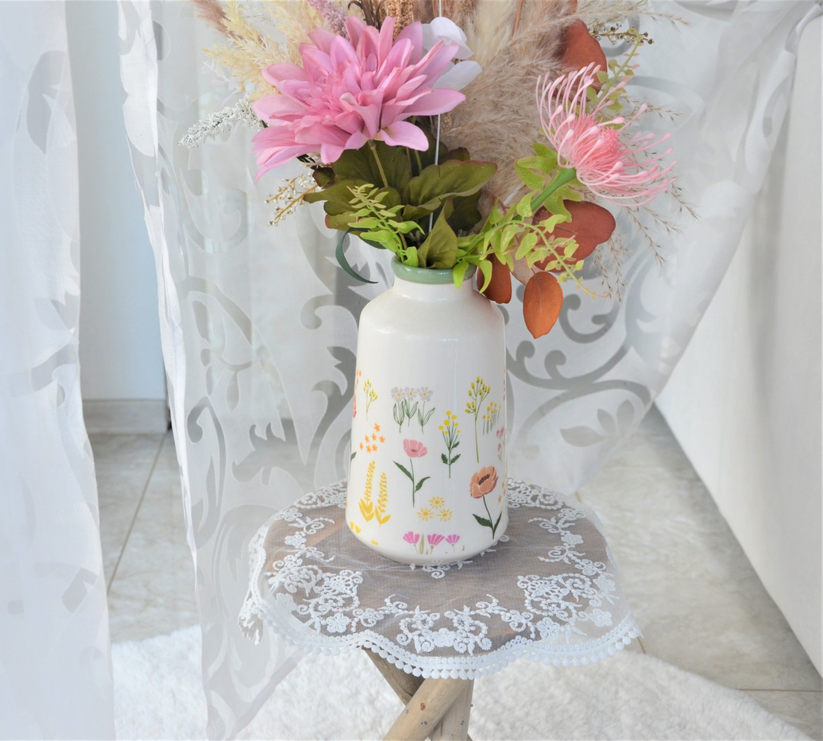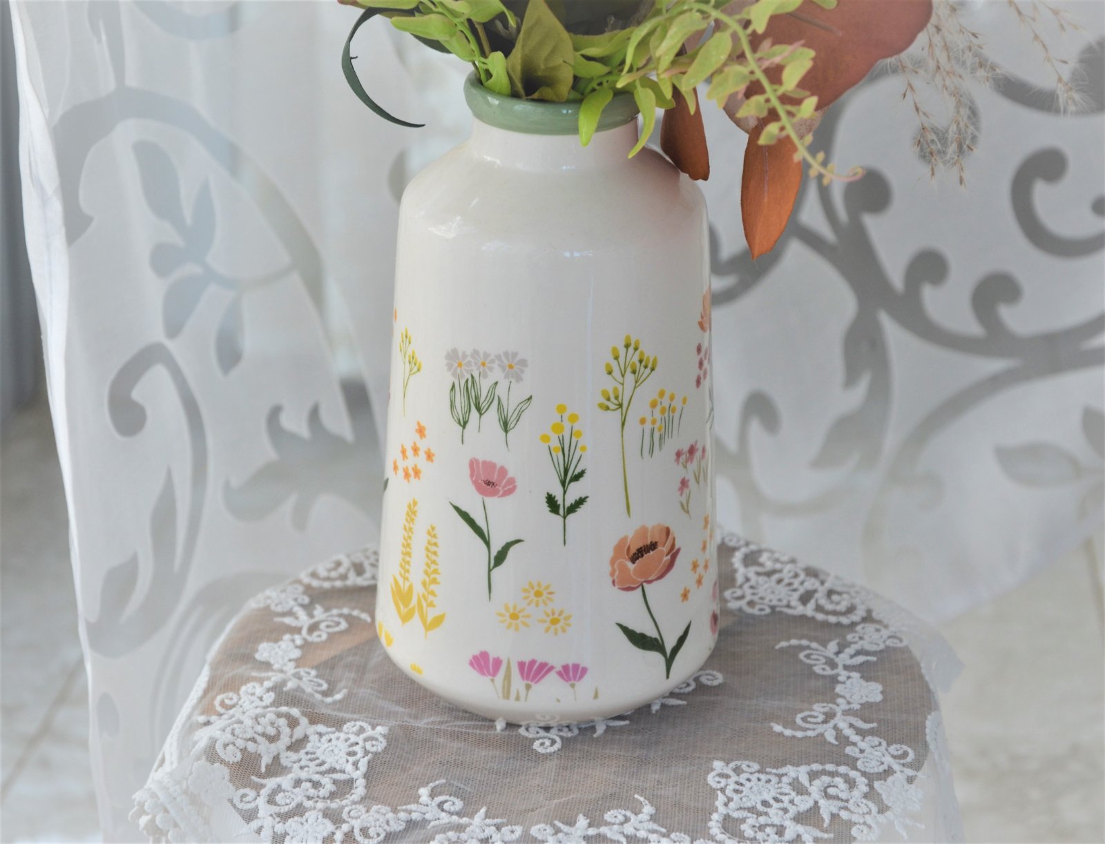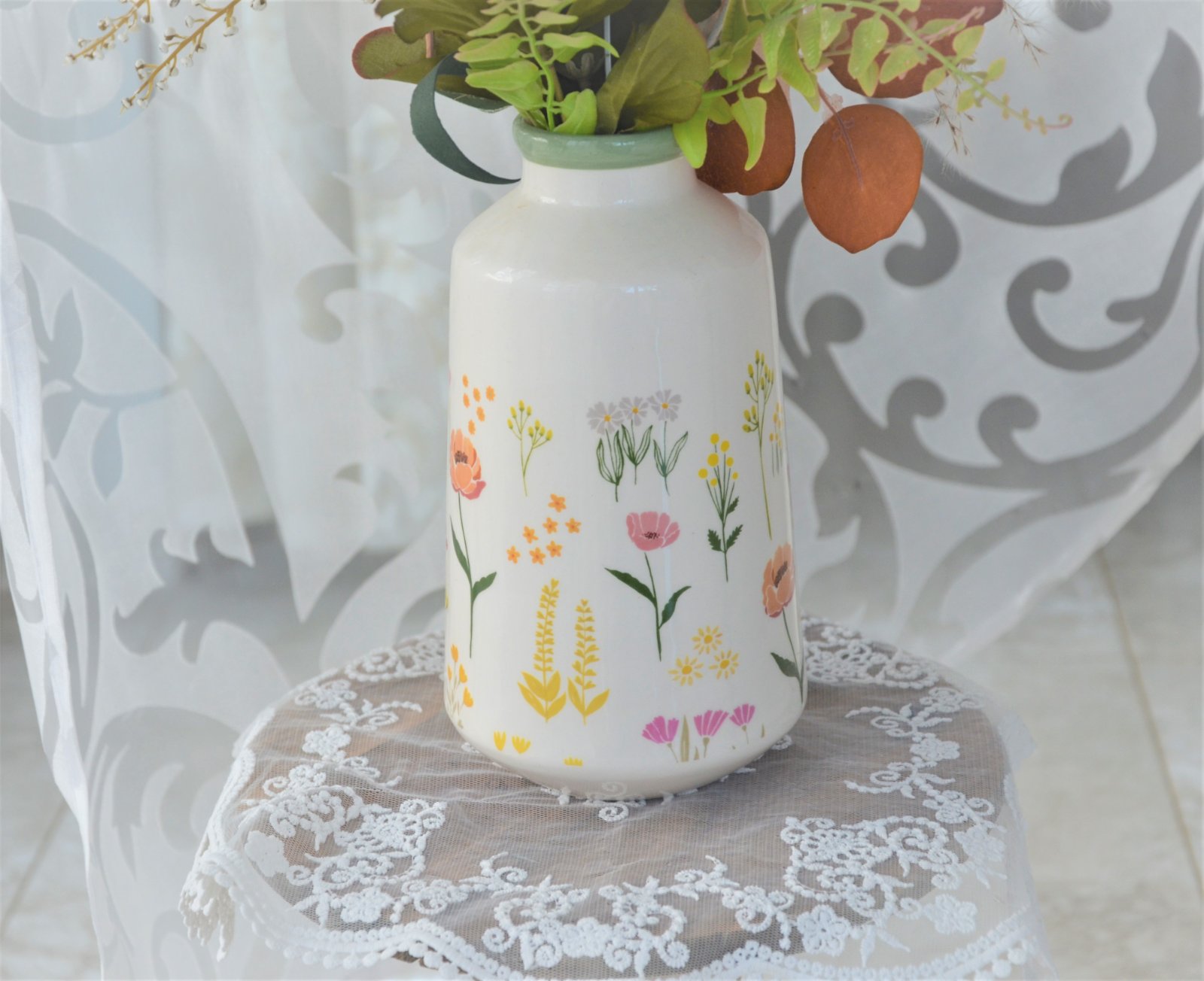 Keramická jarná váza s kvetmi