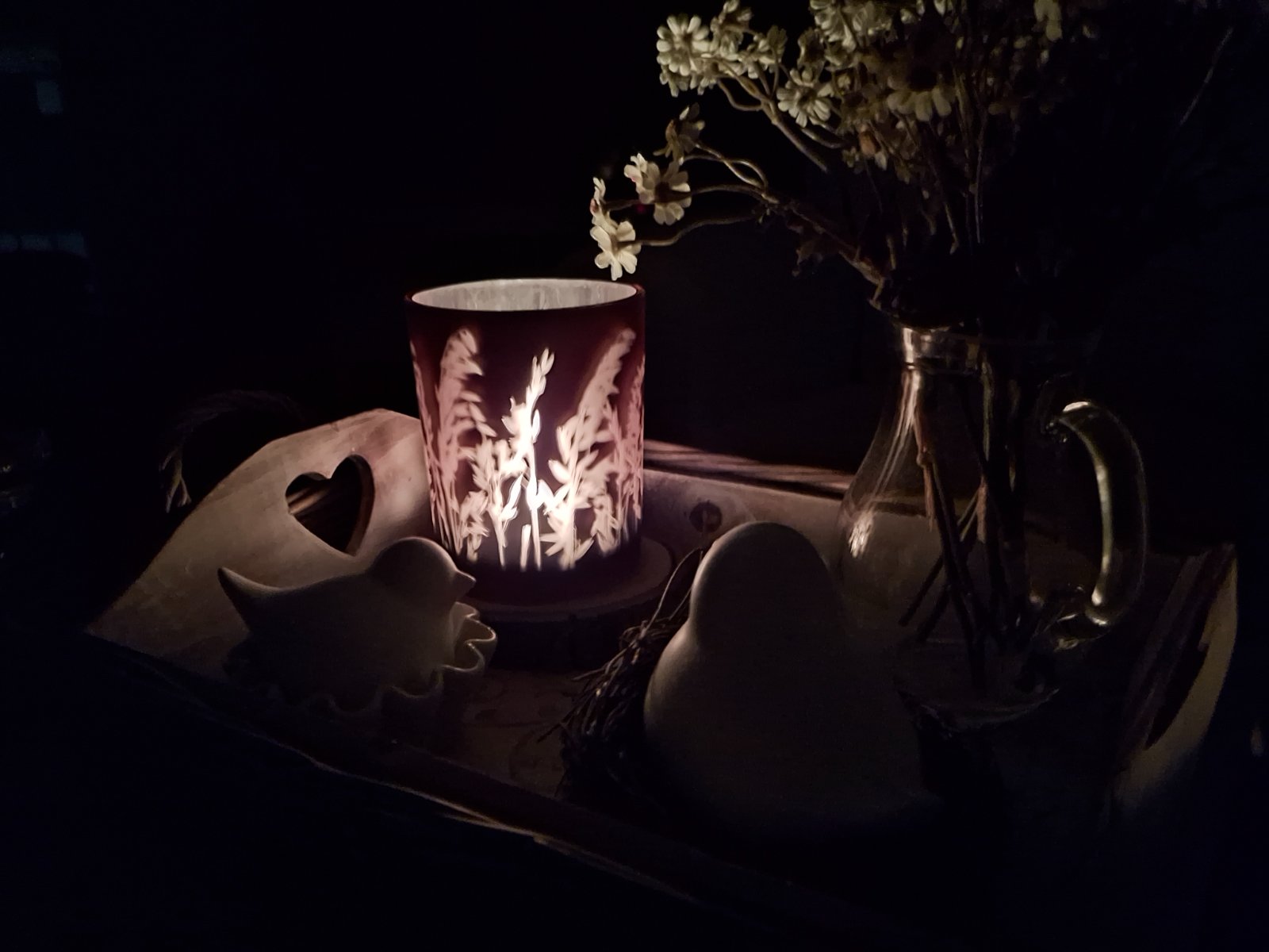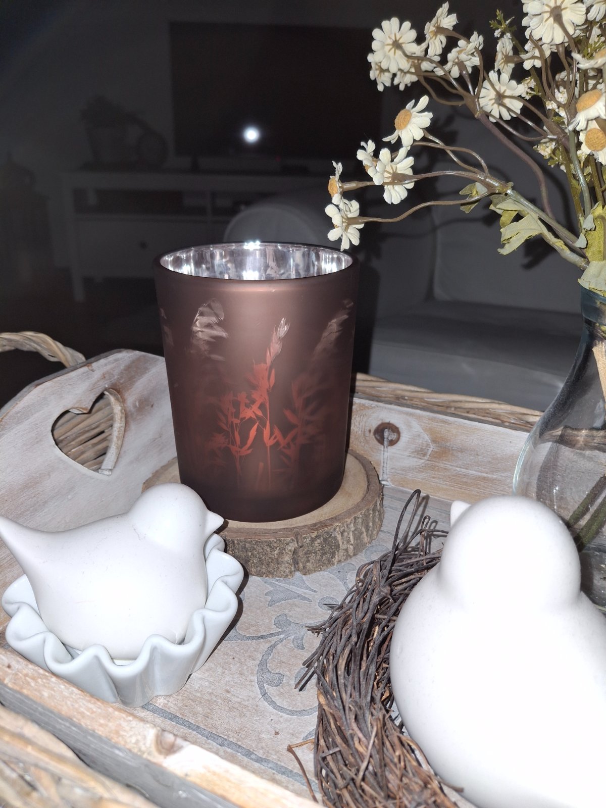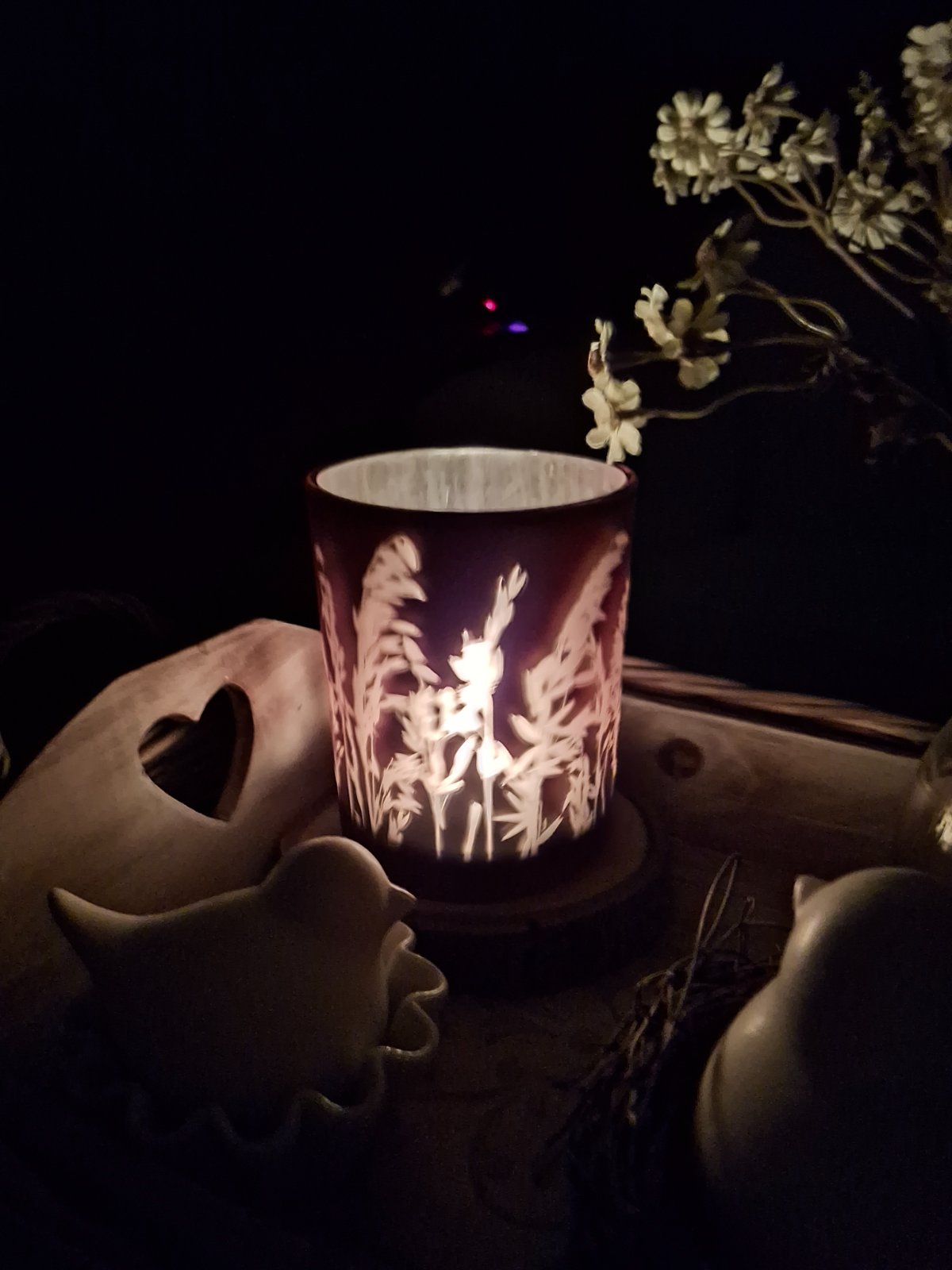 Nadherny skleneny svietnik jesenne travy