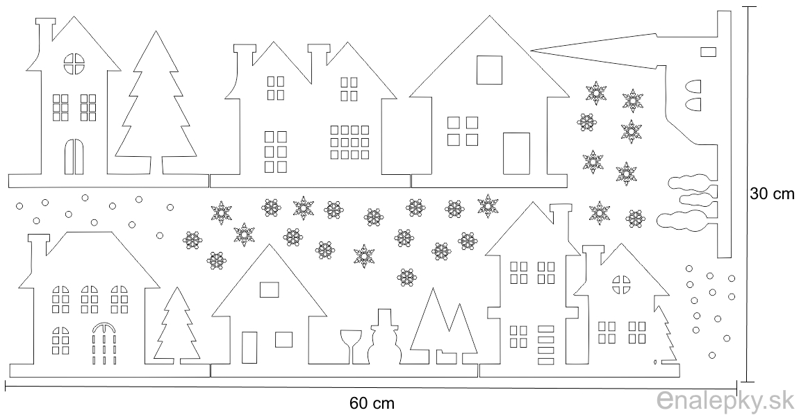 Nálepky na stenu/okno Vianočná dedinka/domčeky (viď foto) + aplikačná fólia