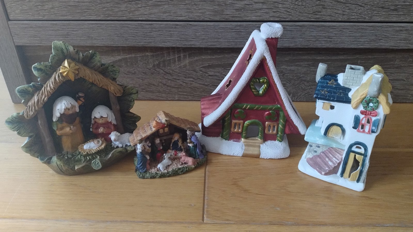 Predam dva vianocne domceky svietniky, ako na foto plus 2 kusy betlehemy keramicke.