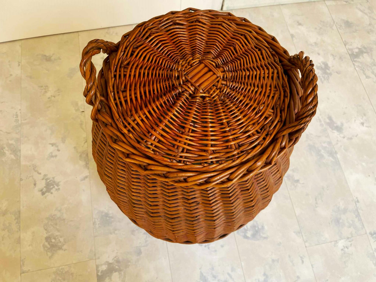 univerzálny prútený kôš s príklopom,vysokokvalitný výplet,top stav,takmer nepoužitý,krásny tvar, top stav,prútie je lakované nie prírodné - vhodné preto aj do kúpelky....ako kôš na prádlo