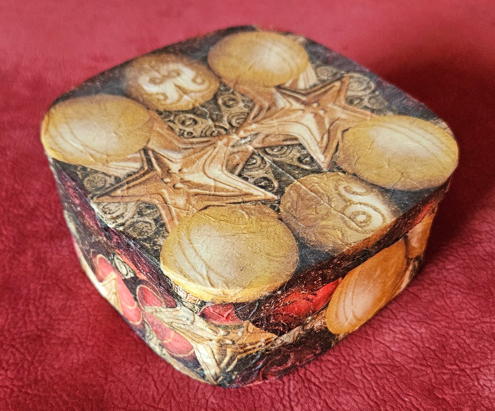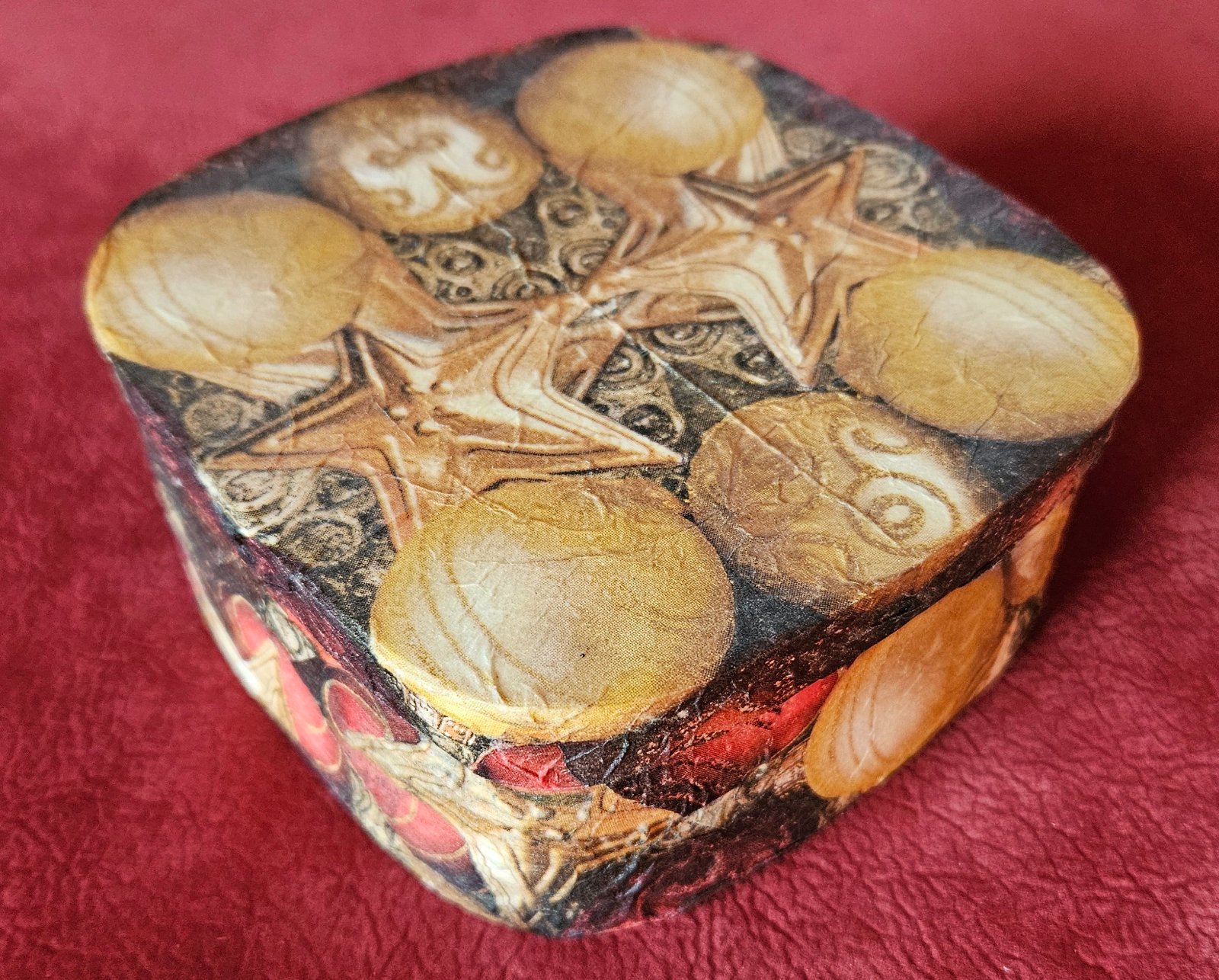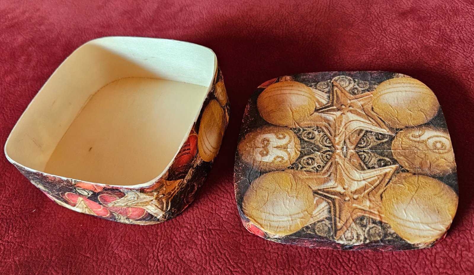 Malá škatuľka 13x13 cm z tenkej drevenej dyhy, ozdobená technikou decoupage,