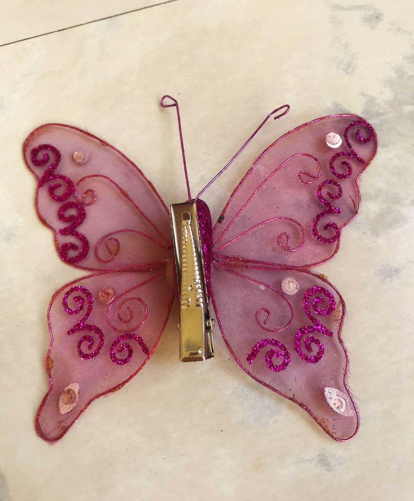 Dekoratívne motýle/sada 3 ks - krásna dekorácia,použitá na 1 Vianoce,ale dá sa použiť nielen na Vianoce,mám aj originál krabičku,upína sa na štipec, 10 x 10 cm