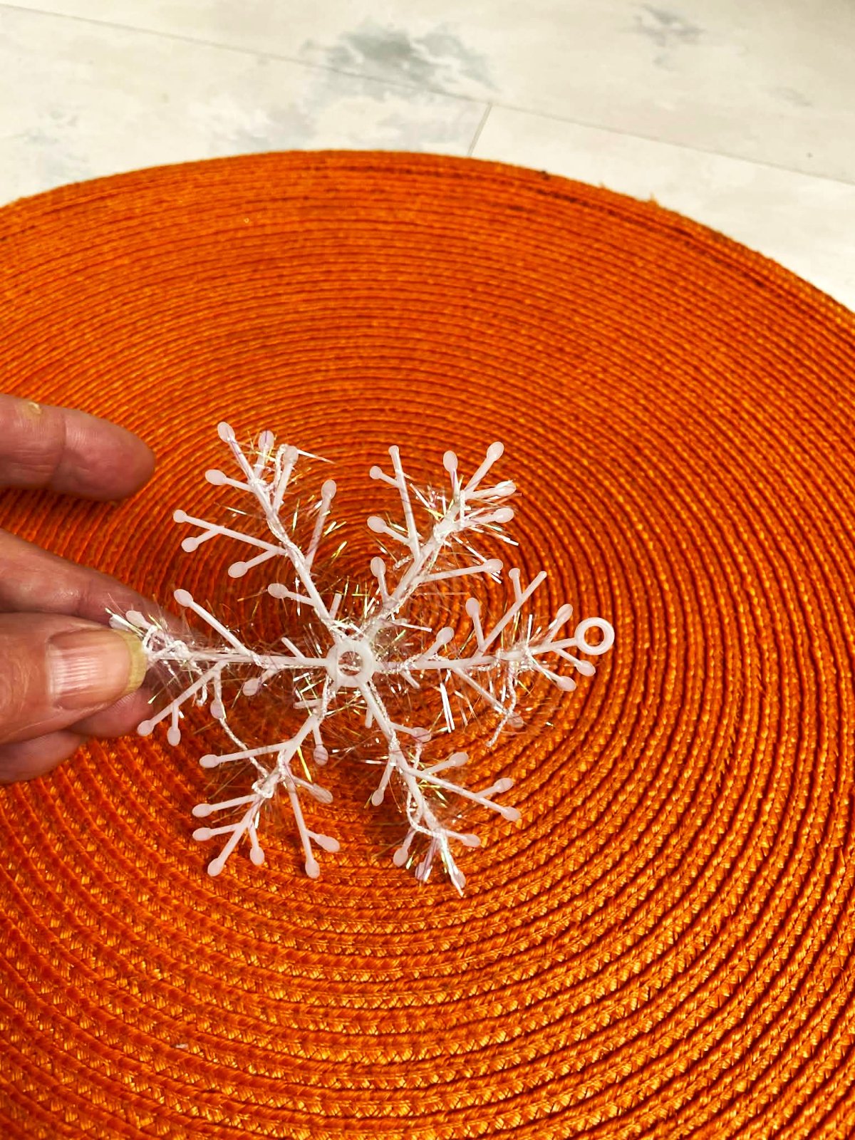 krásne ľahúčke trblietavé vločky ,super dekorácia,nielen na stromček,ale aj na okná,top stav,použité na 1 Vianoce,majú uško na zavesenie ale dajú sa aj voľne položiť na aranžovanie,vo svetle lámu farbu, super to vyzerá aj na Vianočnom stromčeku,uško sa dá napichnúť priamo na ihličie - aj bez šnúrky,krásne menia farbu - trblietavé,priemer = 10 cm