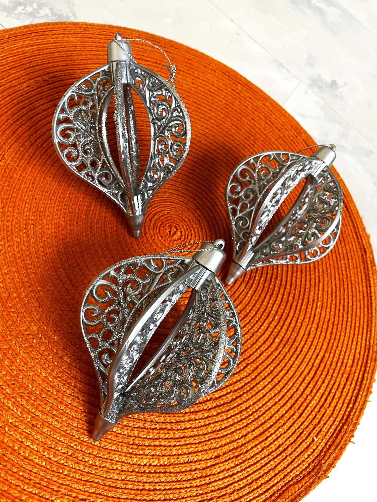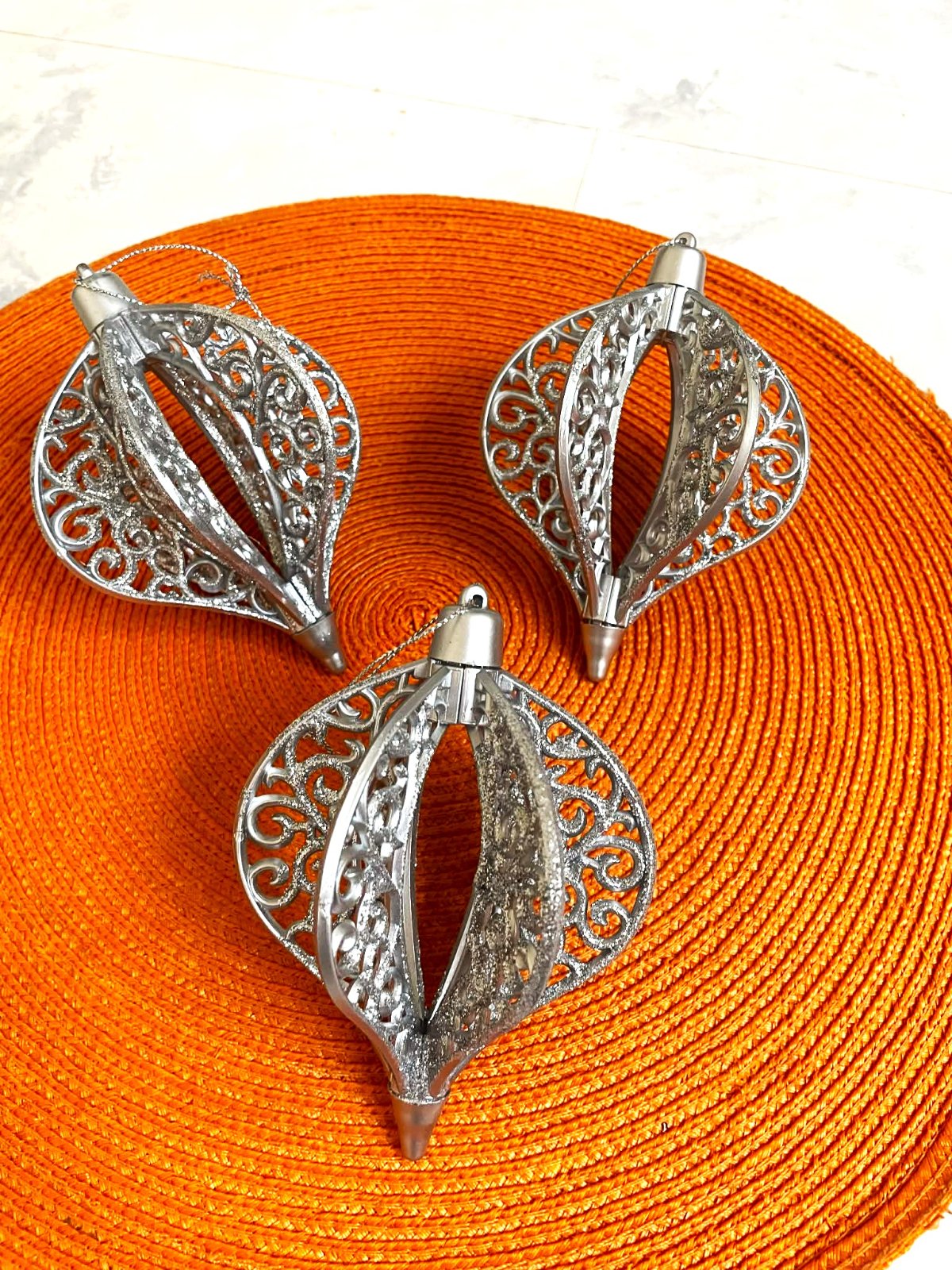 3D dekorácia s krásnym čipkovaným vzorom,použitá ako ozdoba na 1 Vianoce,12 cm = výška,top stav - ako nové,sú s trblietavým popraškom,cena je za všetky 3 ks
