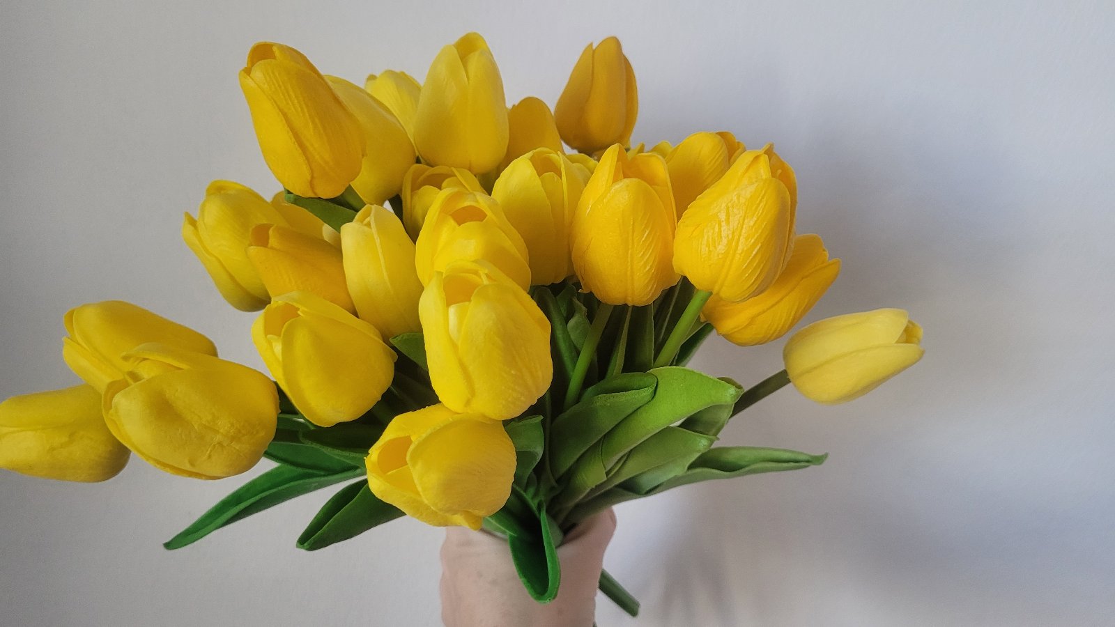Predám kytičku 10ks latexových tulipánov, sú na dotyk a pohľad ako živé. Na foto sú v kytici spolu s tulipánmi krémovej farby.