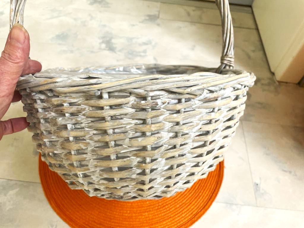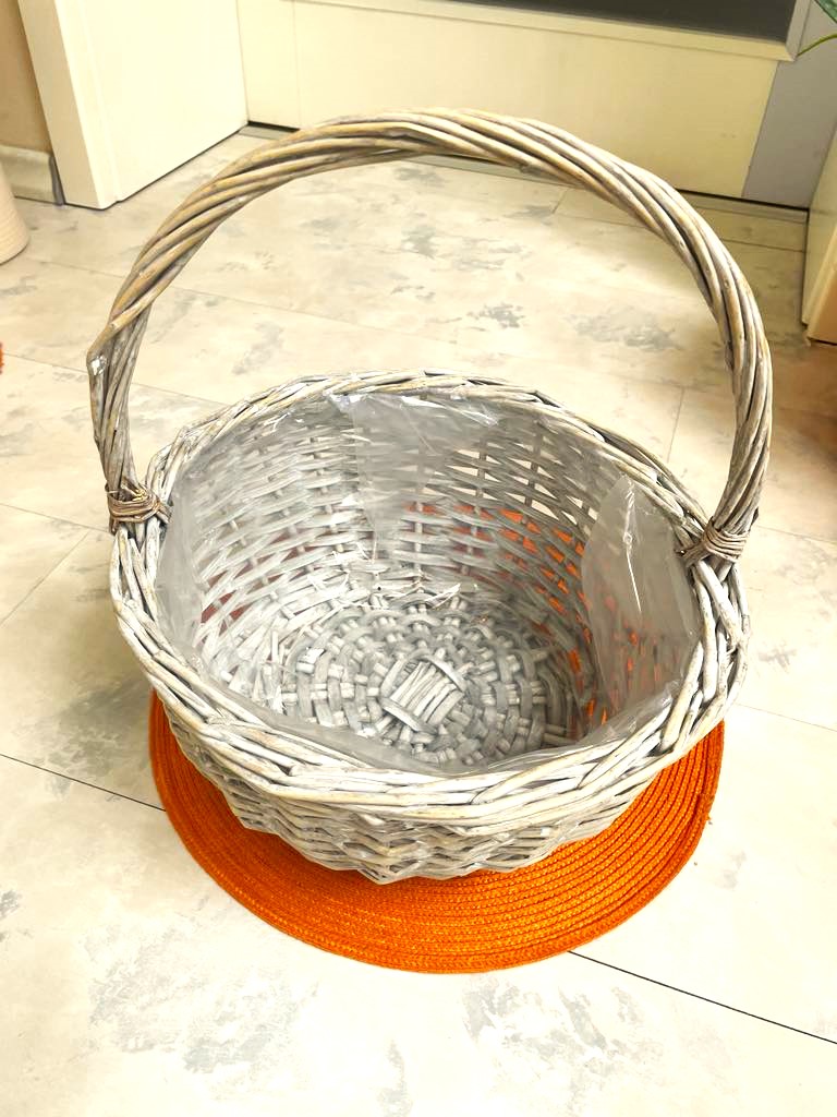 min.užívaný kvalitný vypletaný naturálny črepník na trvalky,alebo letničky,dnu vypolstrovaný hrubým igelitom,aby nepretekala voda,krásny doplnok,vhodný i na ťahavé kvety na zavesenie,alebo na brečtan - ktorý sa okolo rúčky pekne ťahá,výška celkom = 40 cm, vnútorný priemer = 27 cm,výška košíka = 17 cm