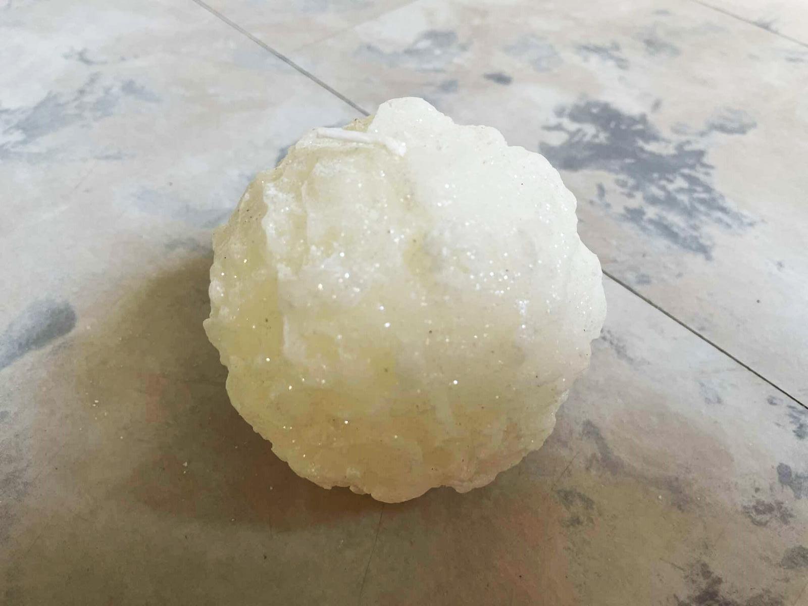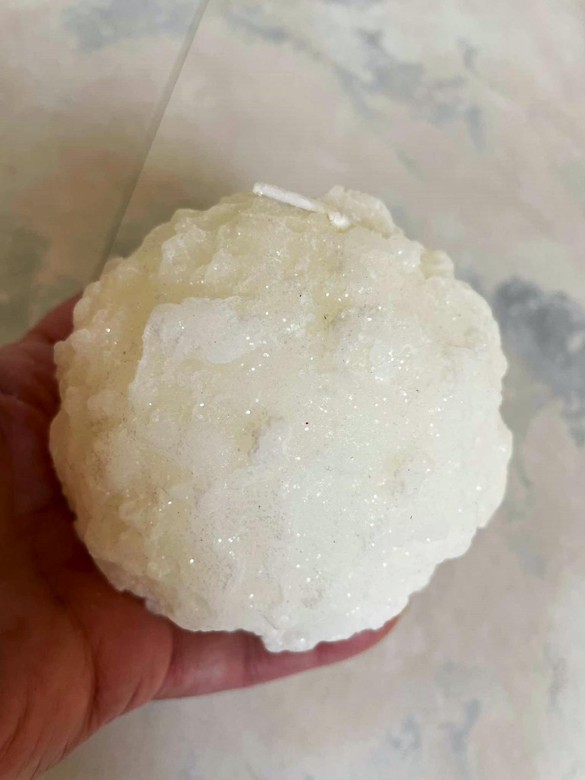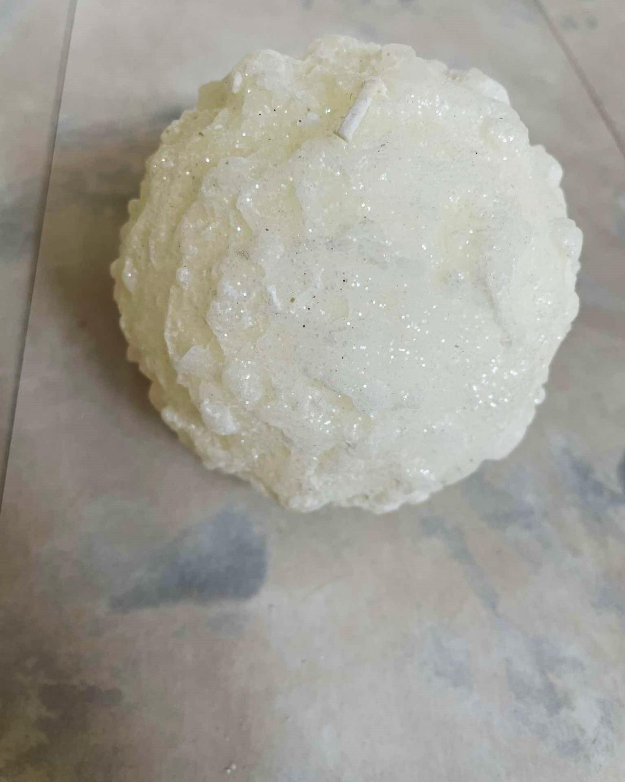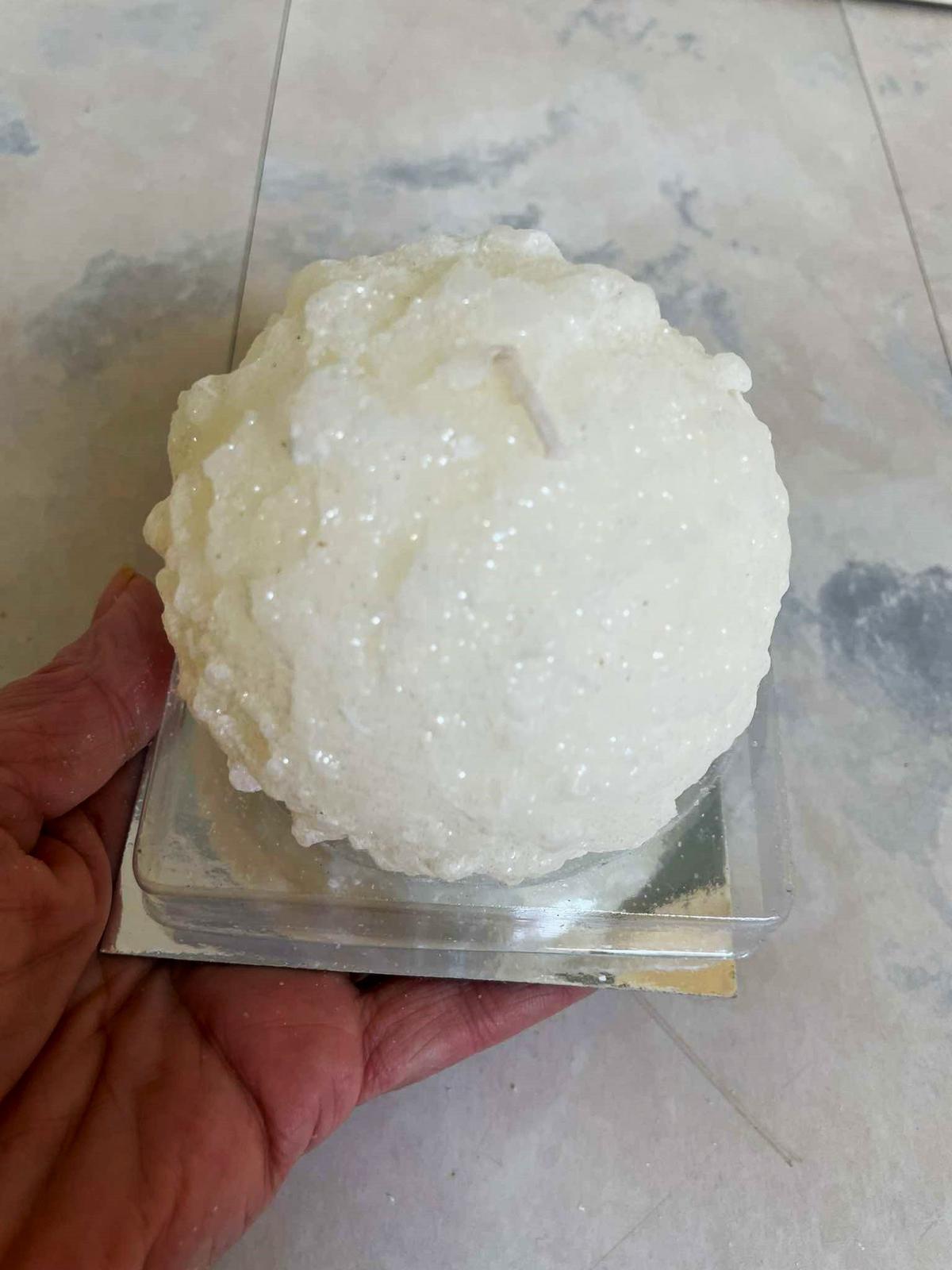 krásna luxusná plastická 3D sviečka,fŕkaná jemným trblietavým popraškom,bola použitá ako dekorácia v ikebane,cca 9 x 9 cm