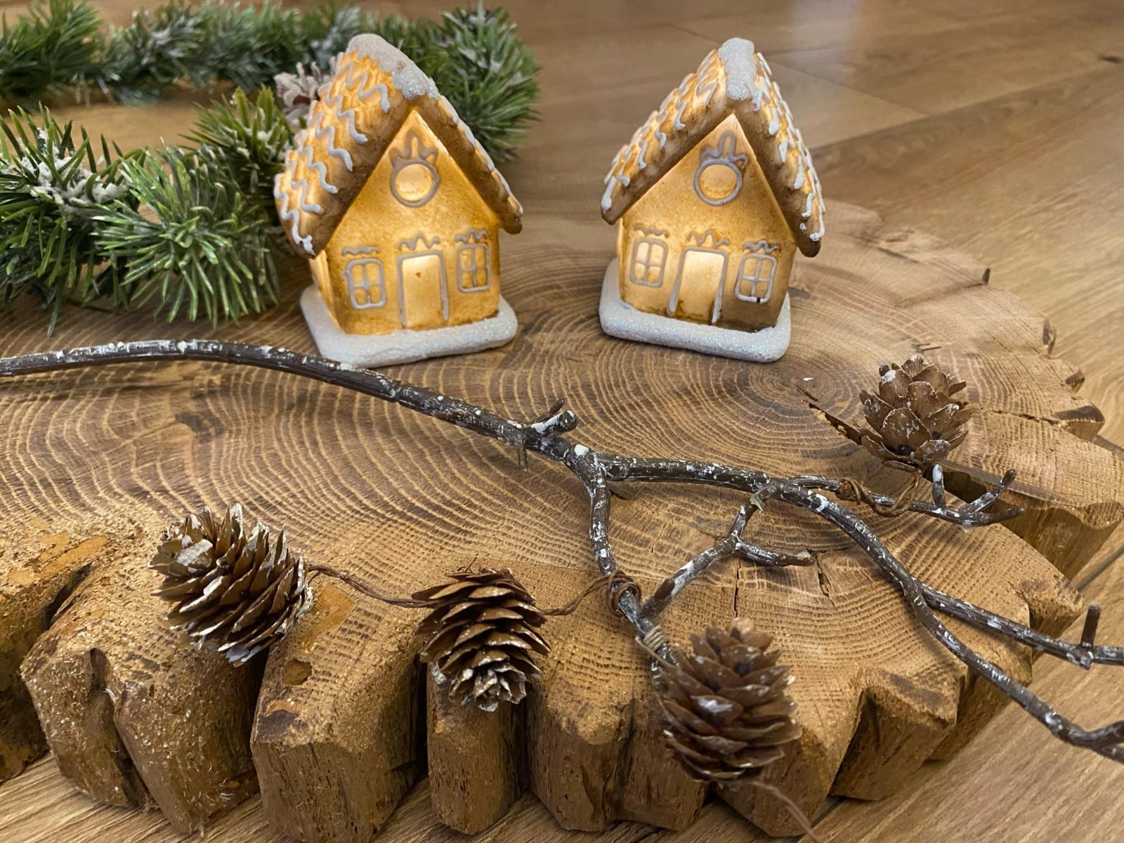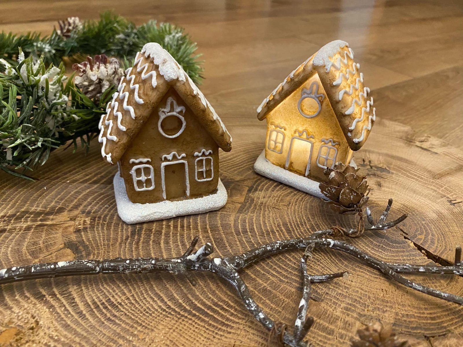 Predám LED malé perníkové domčeky ( svietia na baterku ) - 2 ks