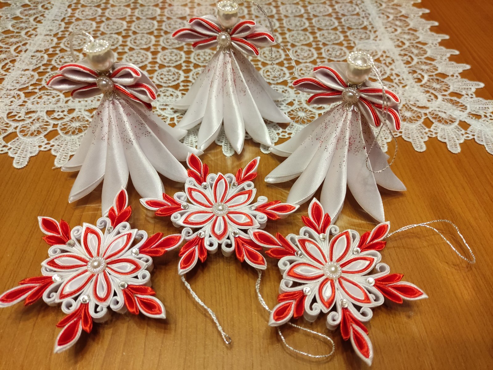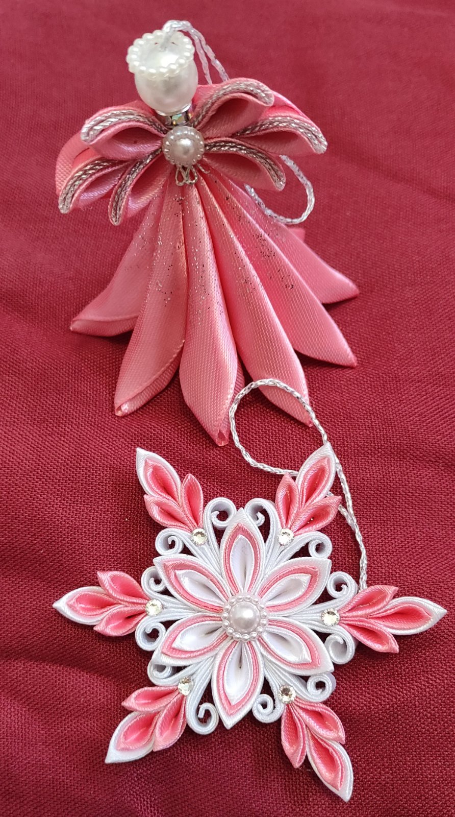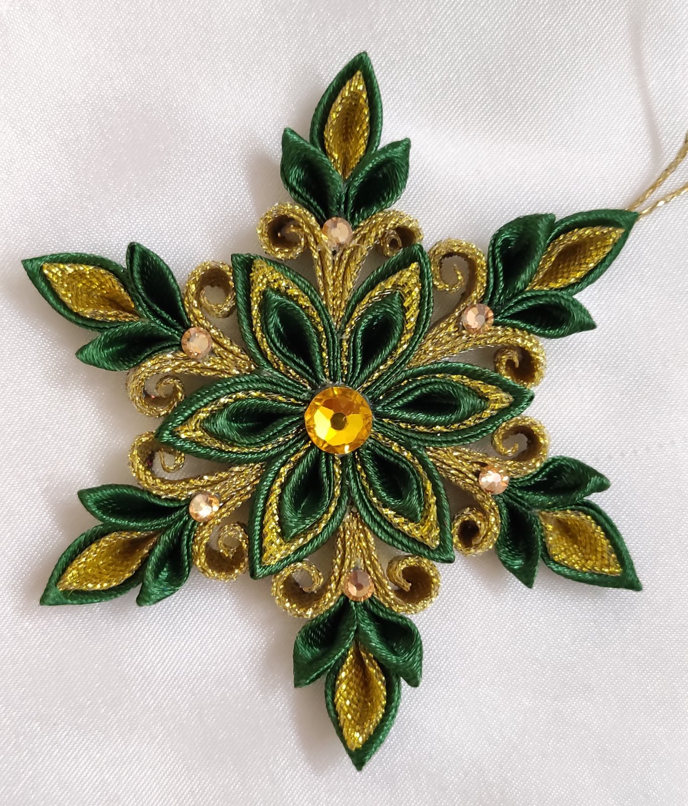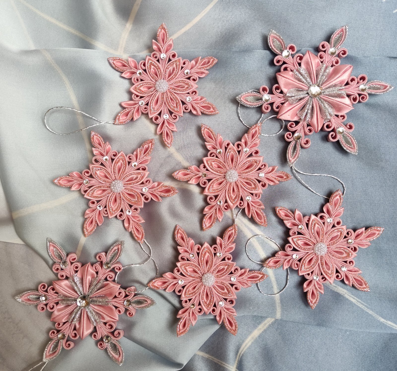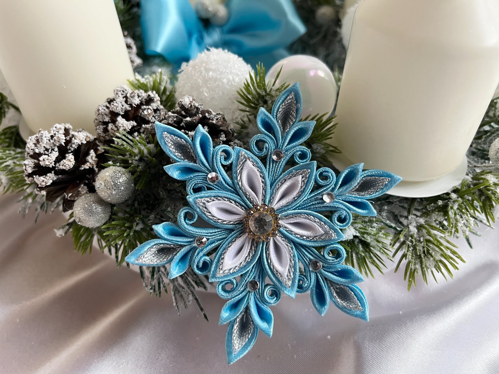 Saténová vianočná vločka v dvojfarebnej kombinácii dozdobená štrasovými kamienkami sa nádherne zaligoce v žiare vianočných svetielok, dodávajúc stromčeku nádych elegancie.