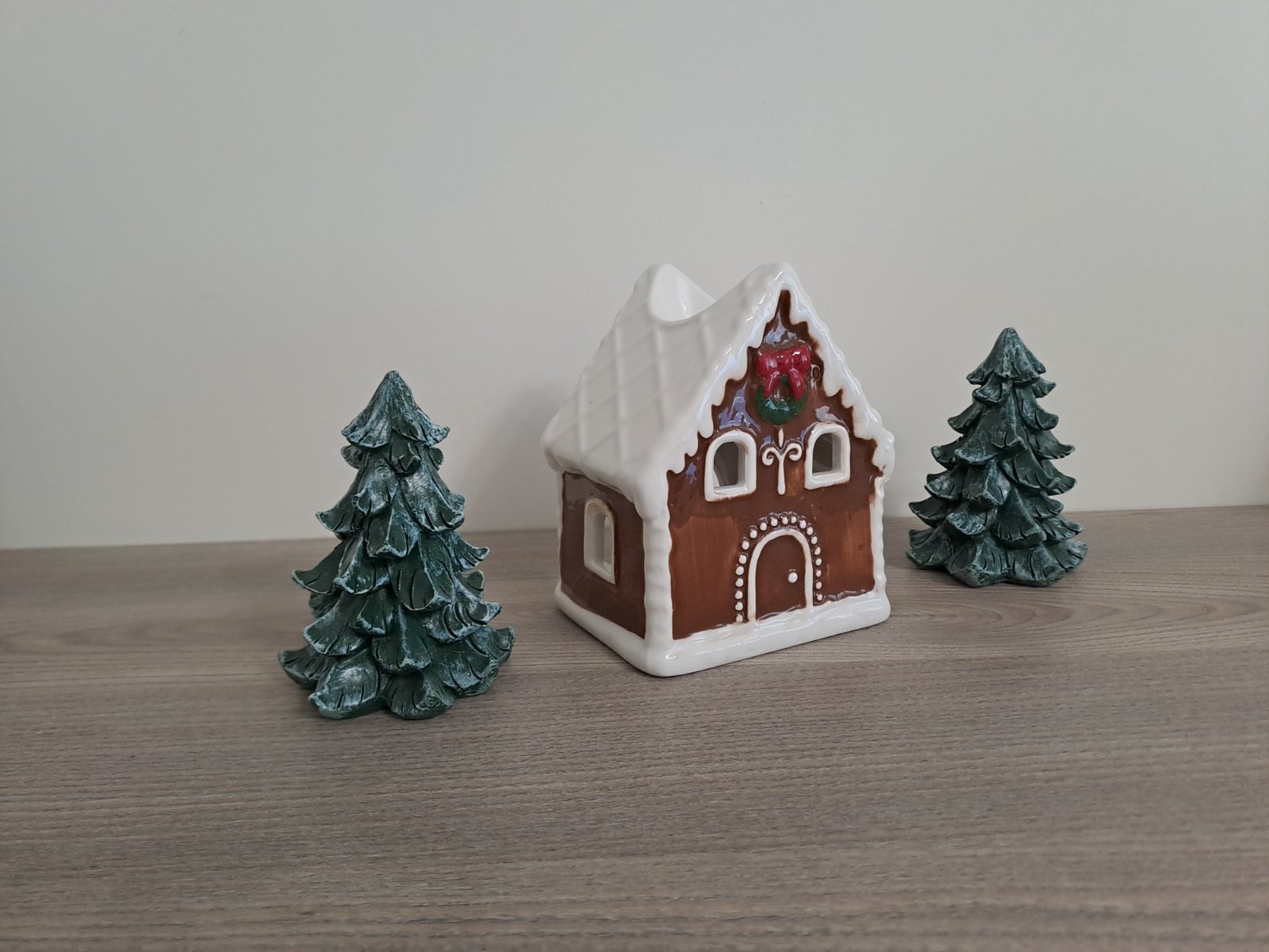 Keramický perníkový domček - svietnik. Výška 14 cm.