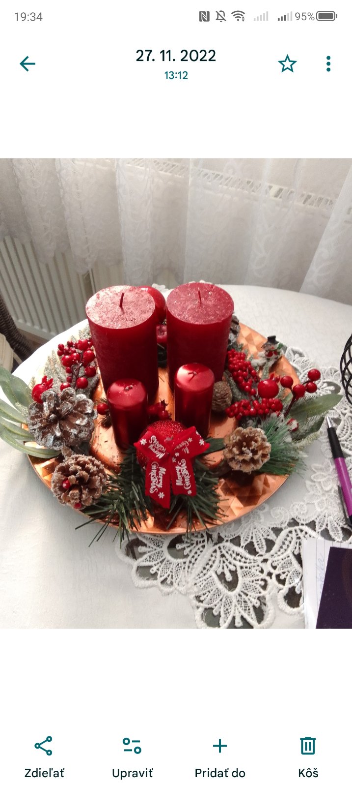Vyrábam na objednávky . To čo odfotila su vzory aké vyrábam . cena za všetko čo svietniky či vence 45 eur nakoľko materiál nie je lacný a kupujem to zo svojich . V prípade záujmu dajte vedieť skôr nakoľko materiál musím kúpiť