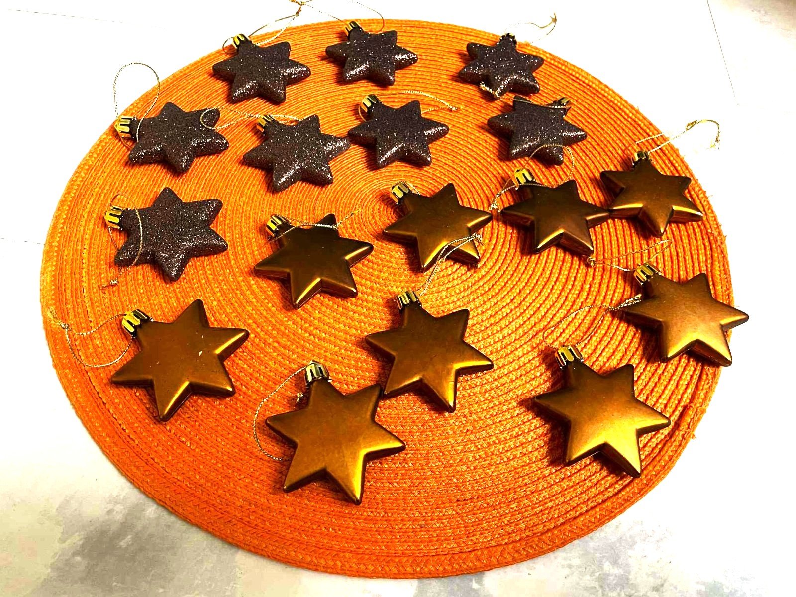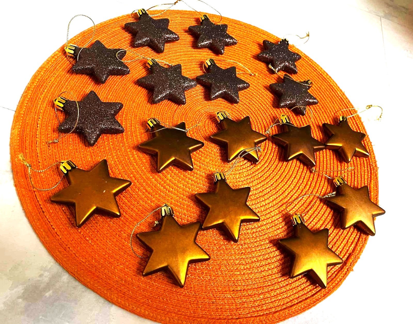 zaujímavé medeno škoricové ozdoby na Vianoce,priemer cca 6 cm,veľmi pekne vyniknú na naturálnom stromčeku,metalízovaná a trblietavá úprava,pozri aj :