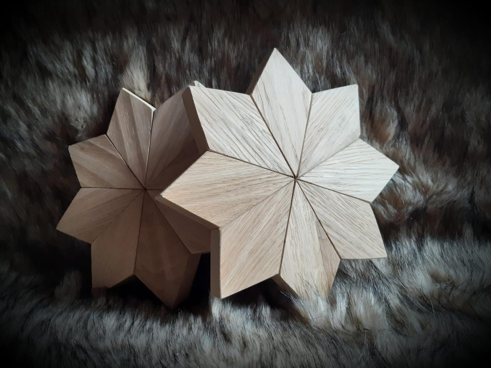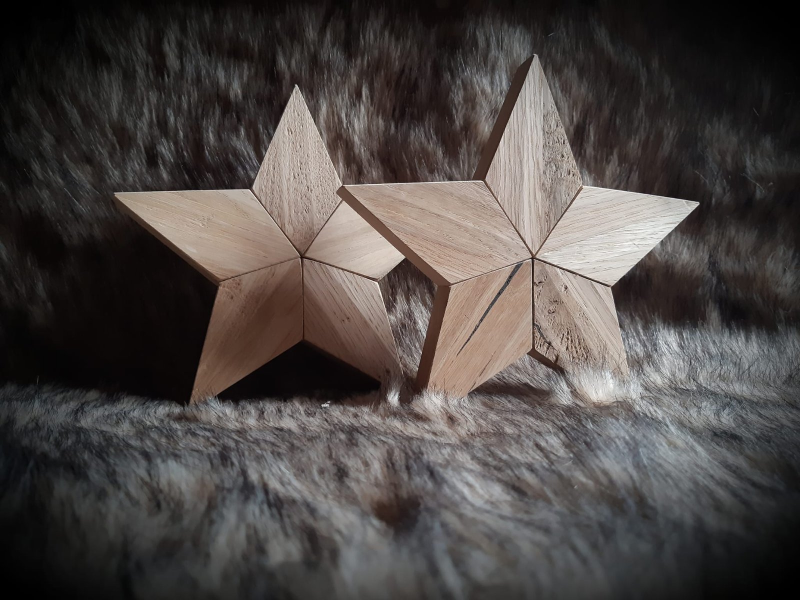 dekoracne volne stojace hviezdy alebo vlocky, material dub, osetrene olejom