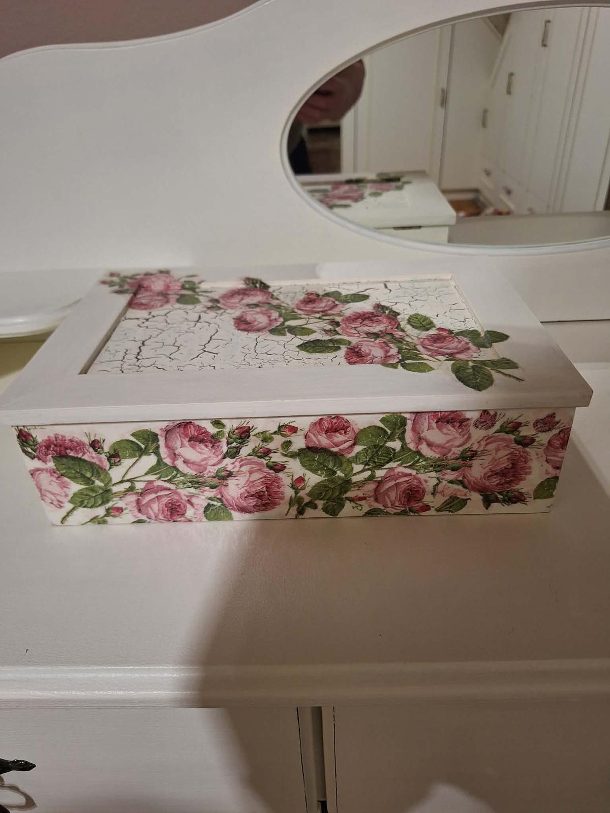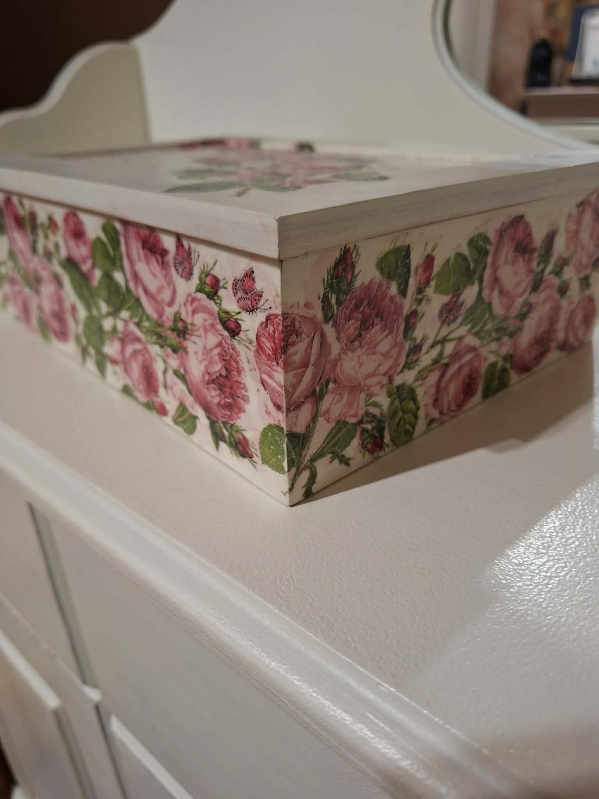Dekoračná škatuľka na drobnosti.Rozmery 13x13 cm,10 cm