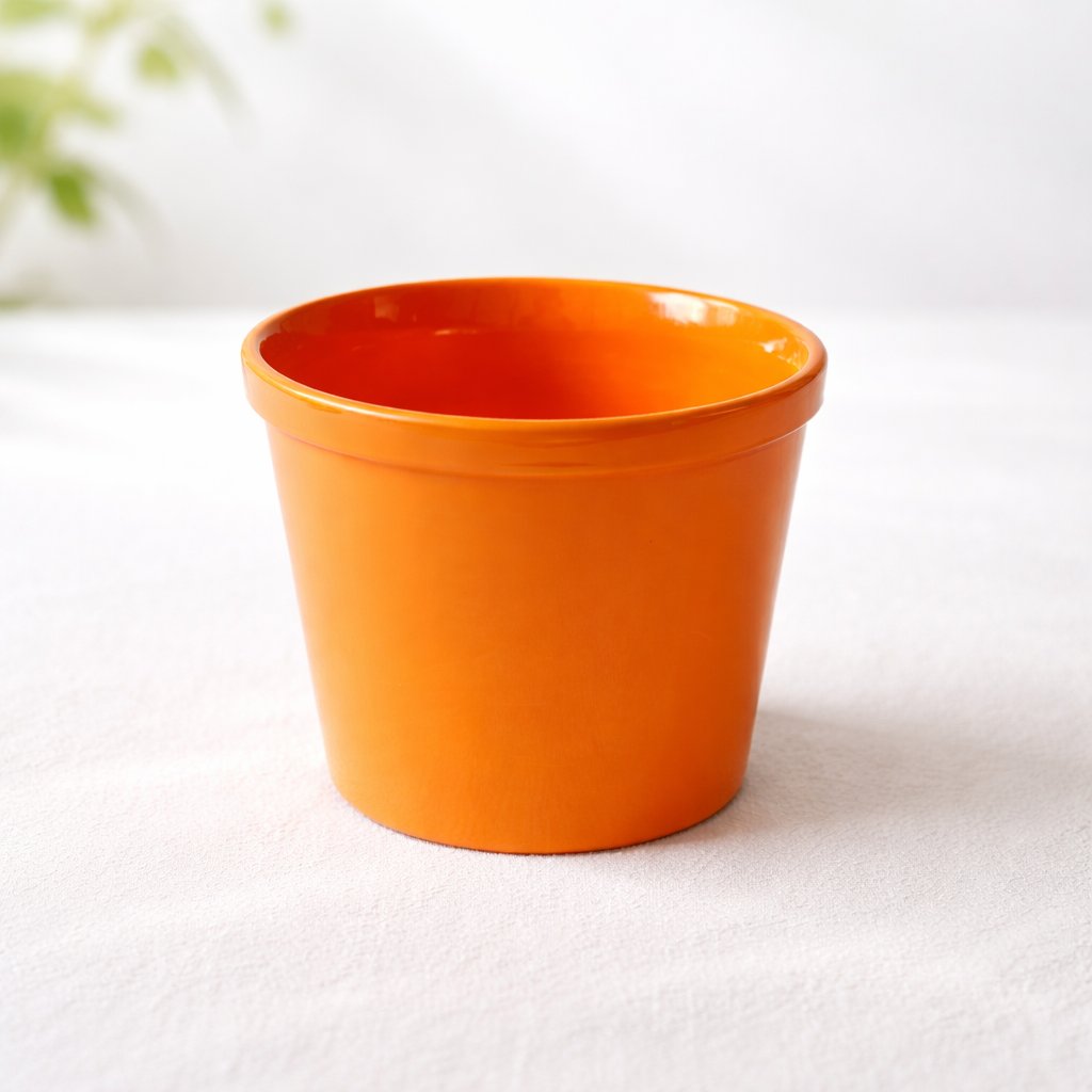 Štýlový oranžový kvetináč v minimalistickom prevedení, ideálny do moderného interiéru, na balkón alebo terasu. Vďaka výraznej farbe krásne oživí priestor a zvýrazní každú rastlinu.