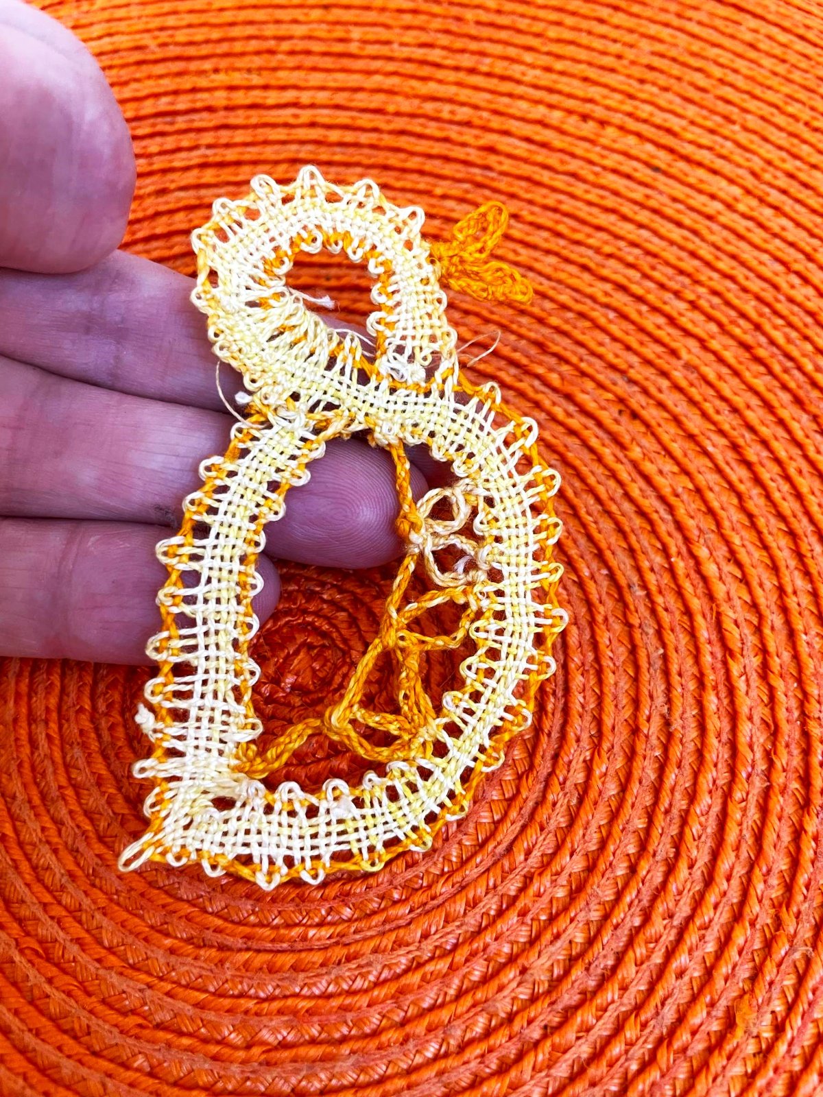 jemná dekorácia zo Solivarskej čipky,na zavesenie - na vetvičky bahniatok,alebo iné