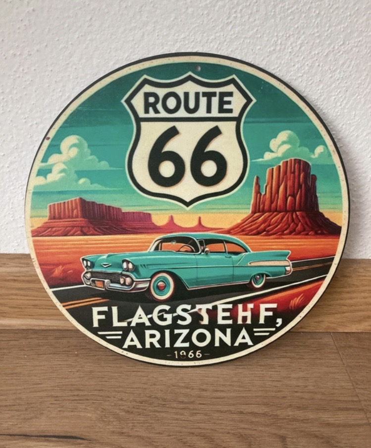 Ceduľa kovová route 66 priemer 20cm