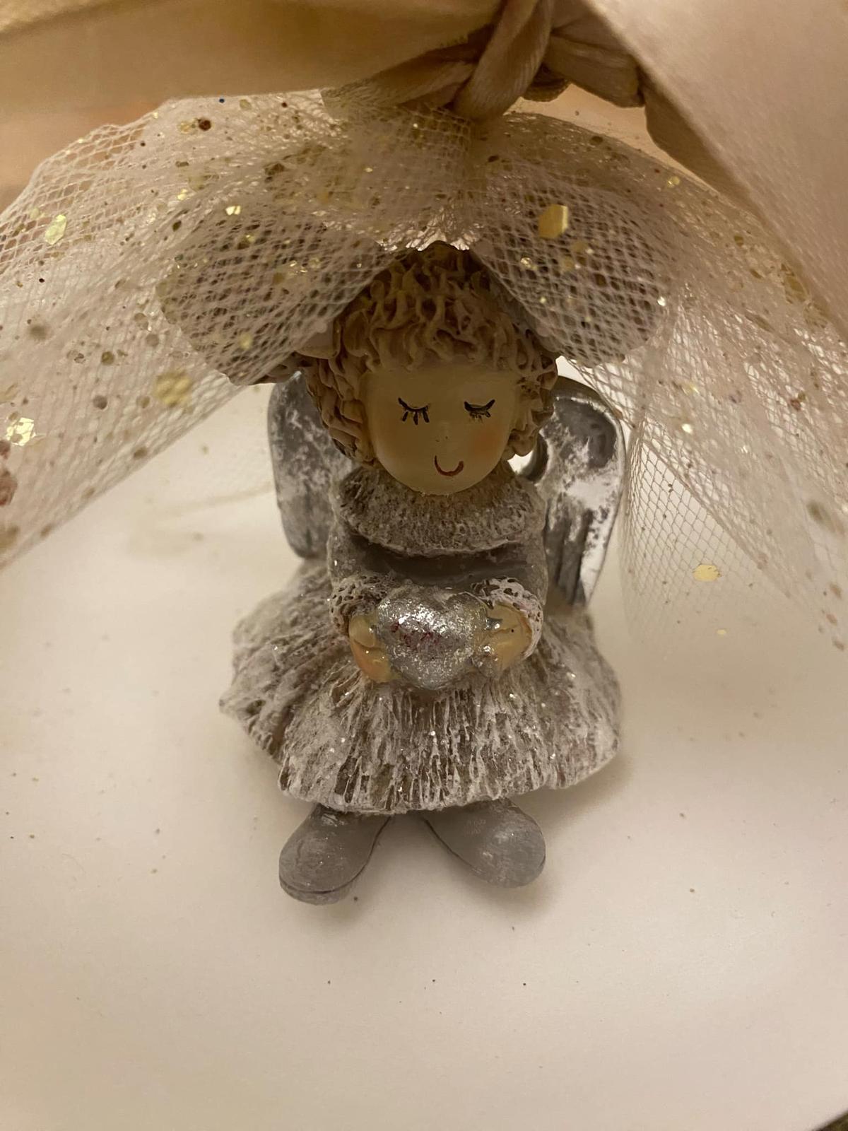 Predám anjelika na položenie ( dievčatko so srdiečkom ) v darčekovom balení - dekorácia.