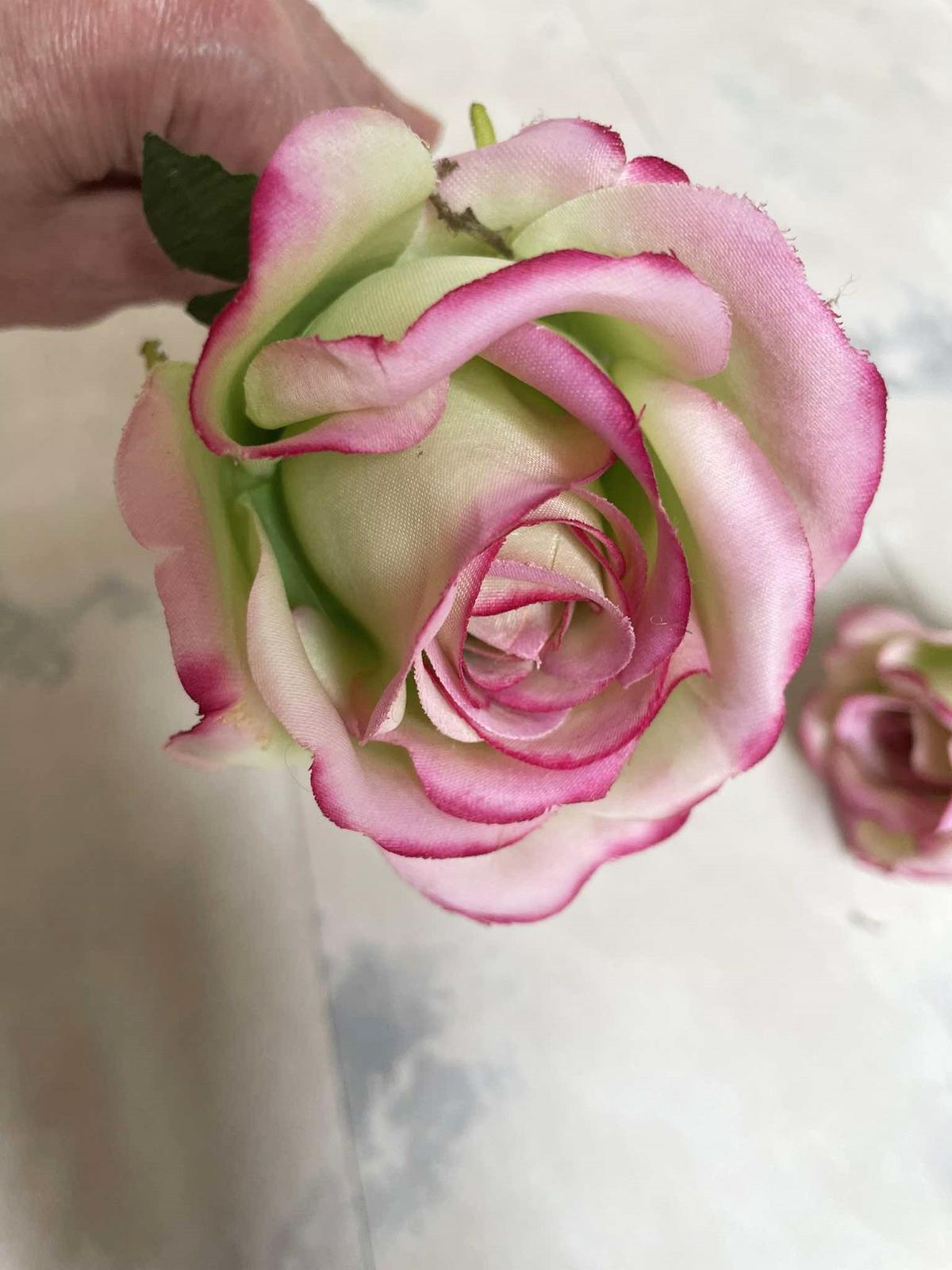 krásna imitácia ruží,foto vo váze je iba pre ilustráciu,super dekorácia,min. užívané,iba vystavené,predám aj jednotlivo v prípade záujmu,cena za 1ks/6 eur