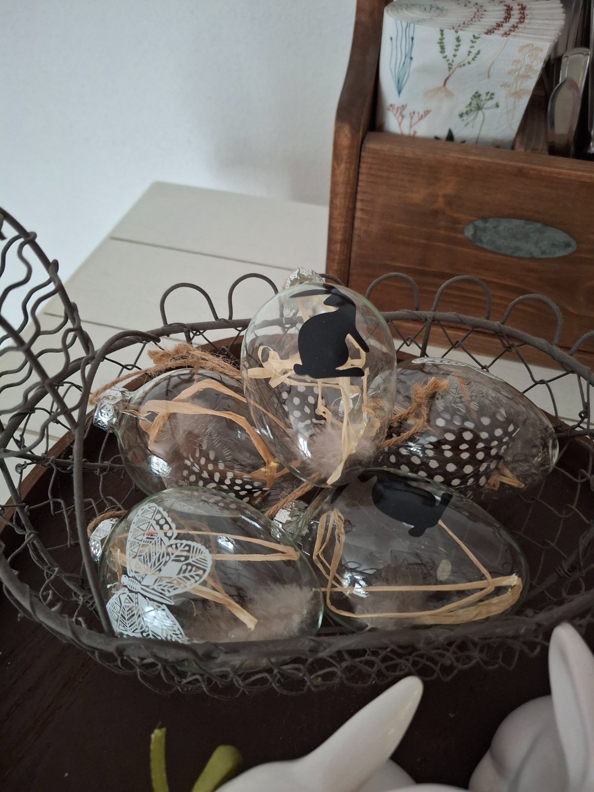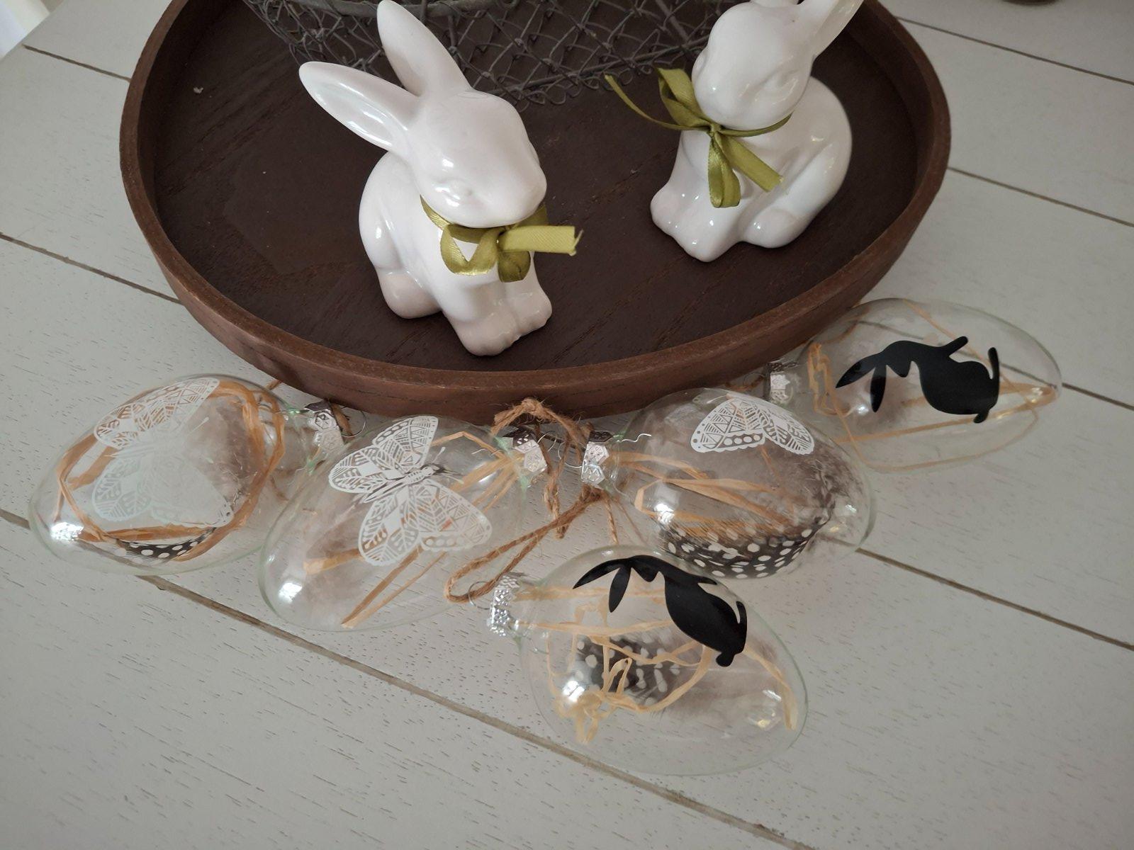 5ks Prekrasne sklene vajicka vo vnutri s pierkami velke číre fúkane zo skla zo zahranicia 🤍🩶☘️🤍🩶☘️