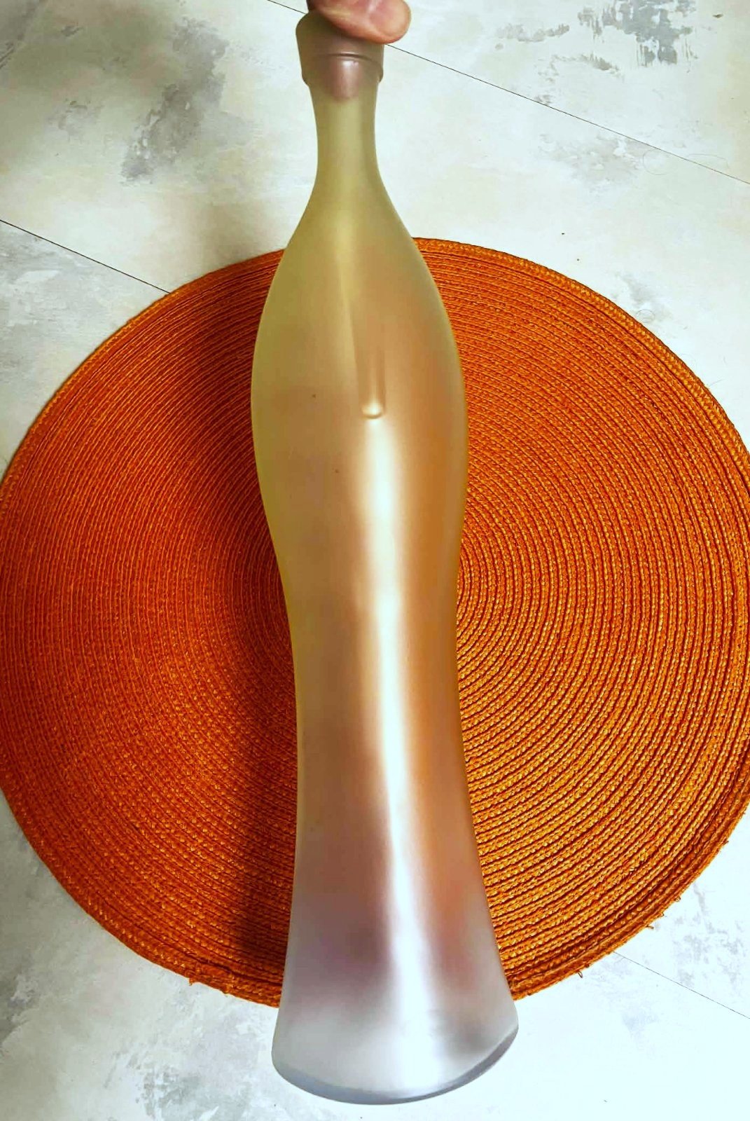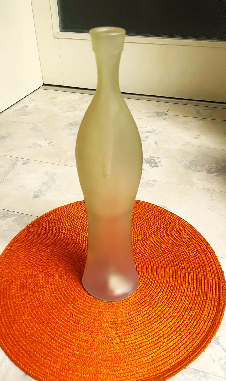 vysoká zaujímavá váza z ľadového skla,priesvitná,žíhaná do biela