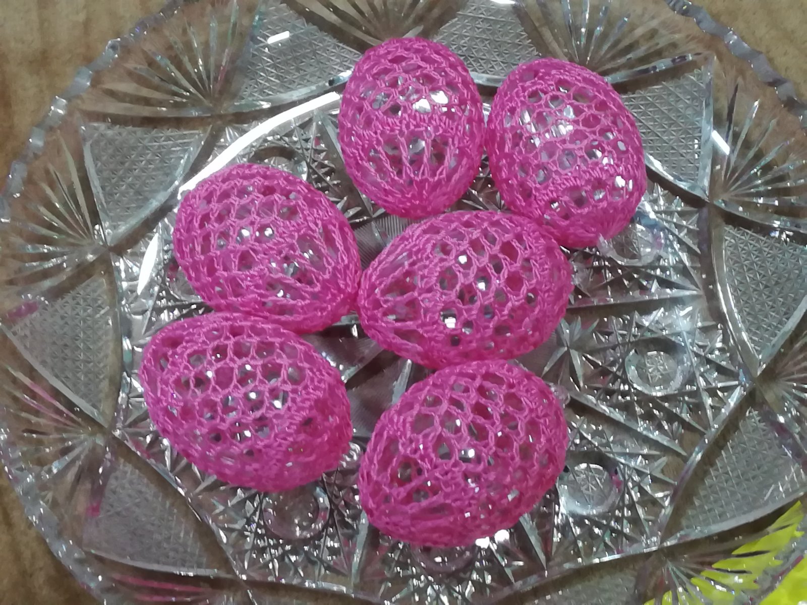 Háčkované na plastovom vajíčku.