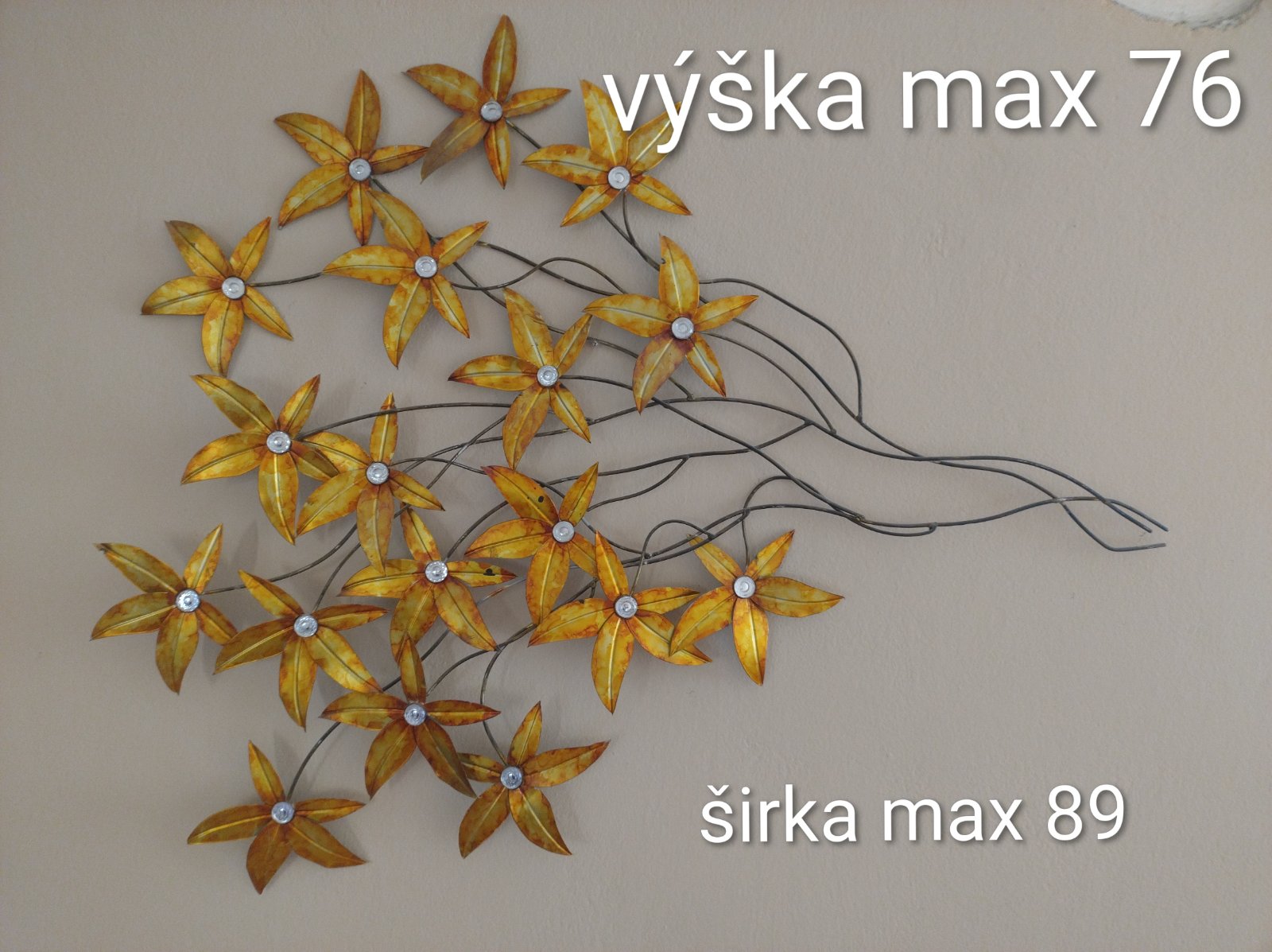 Krásne plechové kvety s krásnym kamienkom v strede.