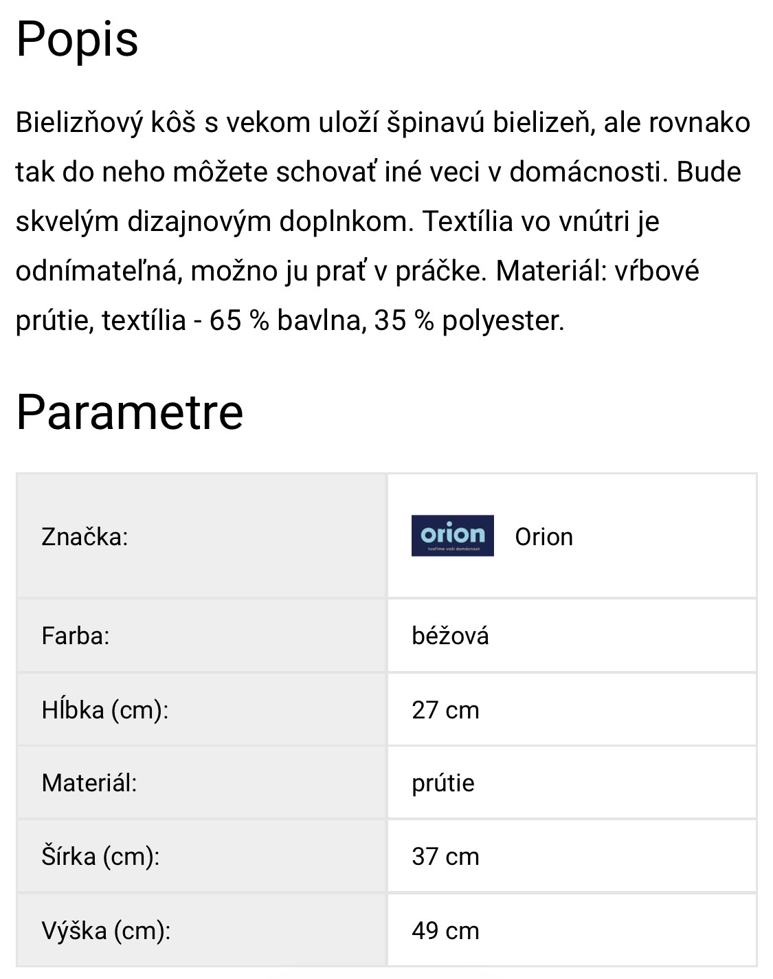 Prútený kôš ma prádlo Orion