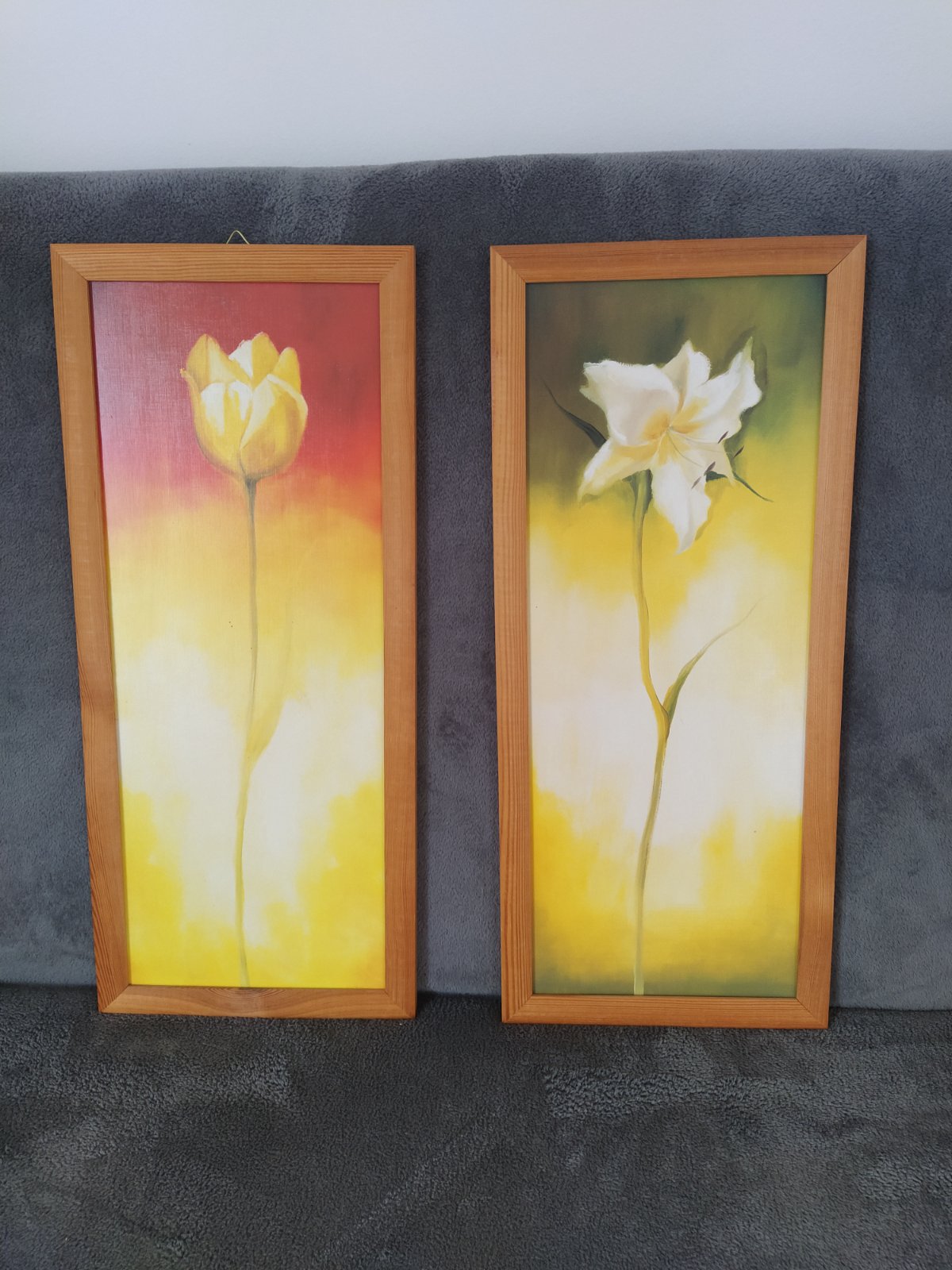 Pekné obrazy kvetín, bez poškodenia, či vyblednutia, drevený rám.