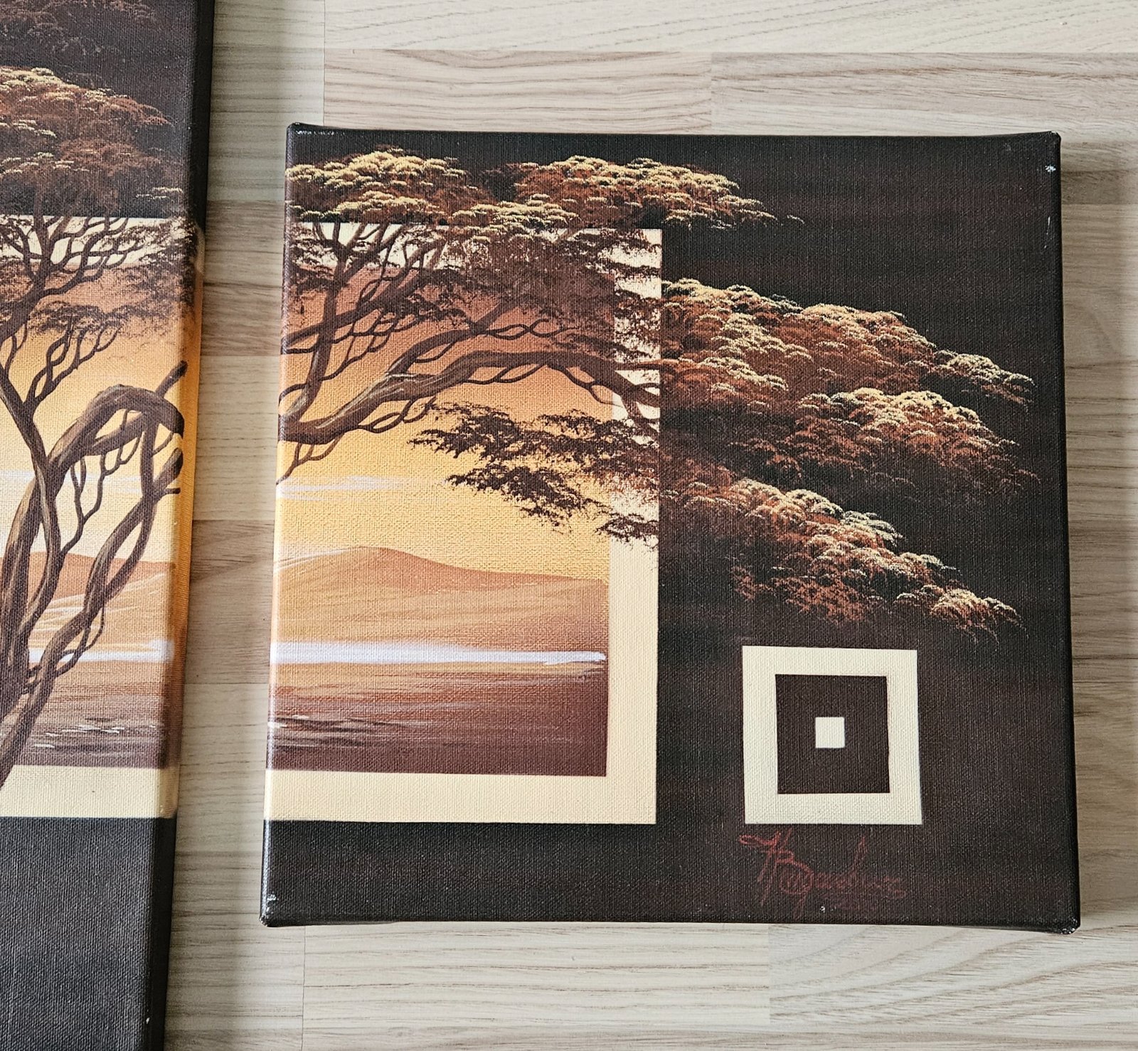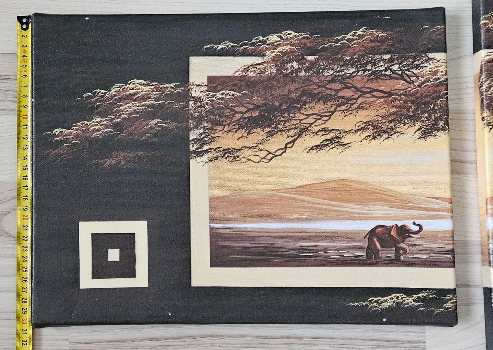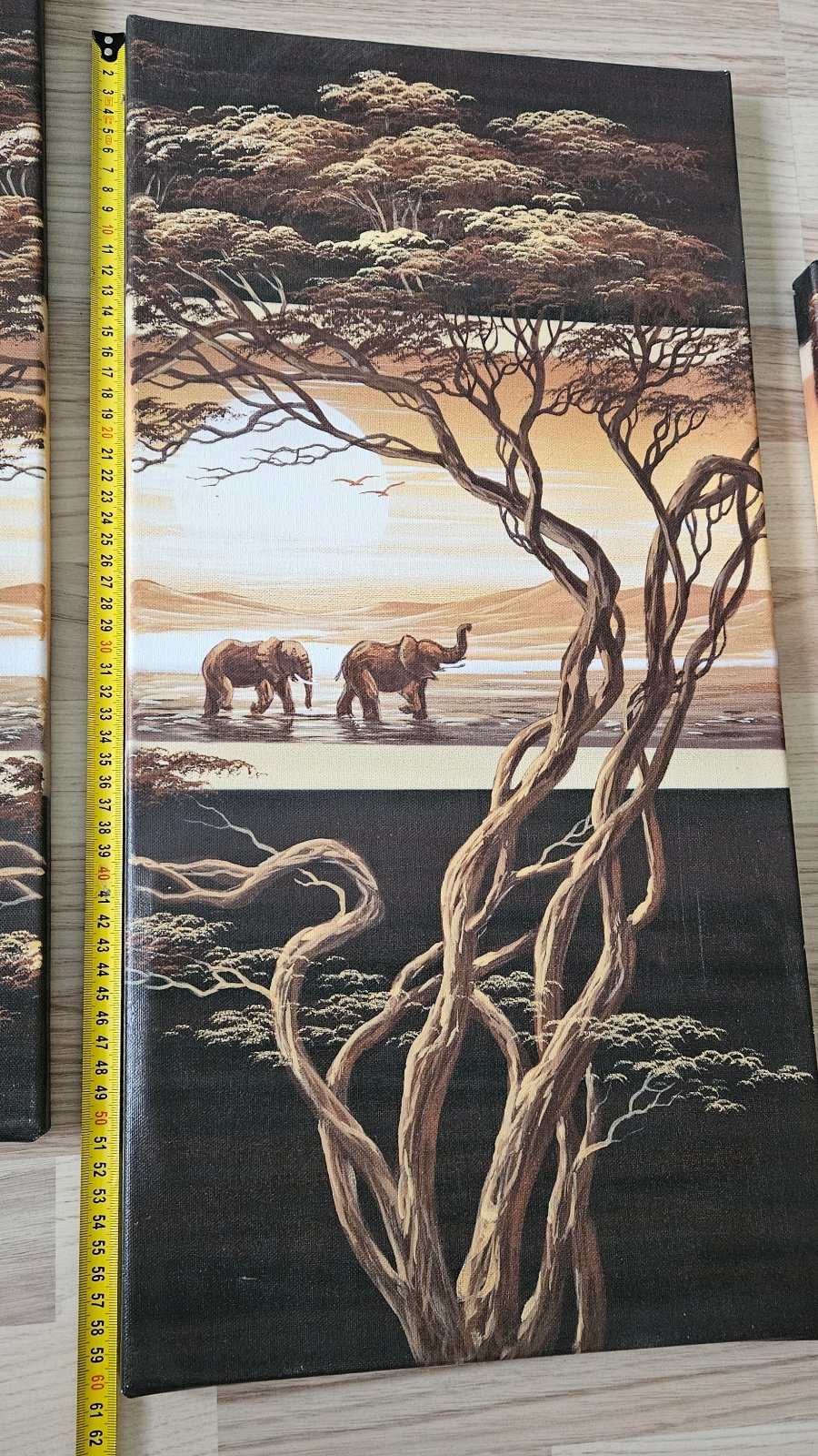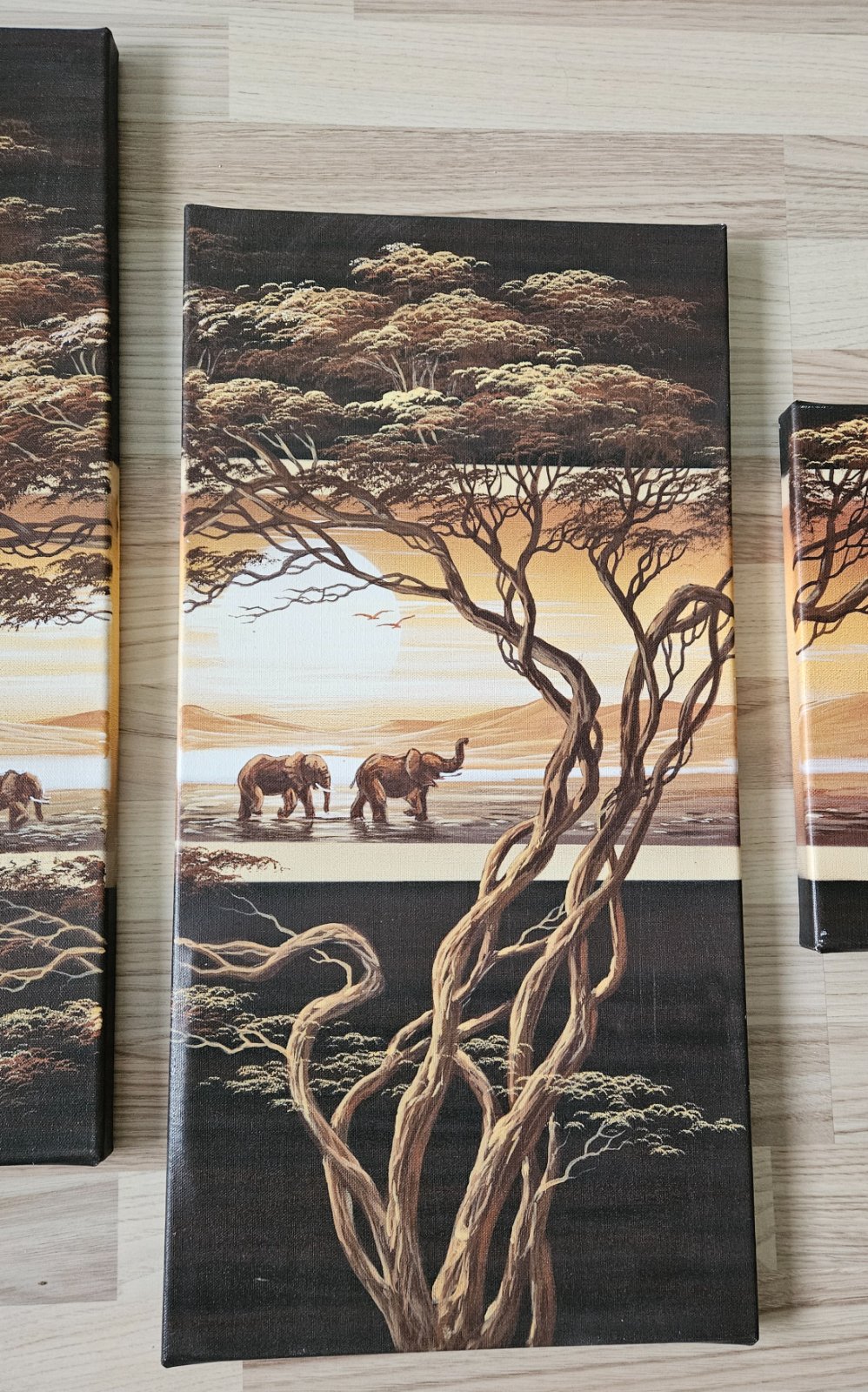 Ponúkam sadu štyroch obrazov s motívom africkej savany a slonov.
