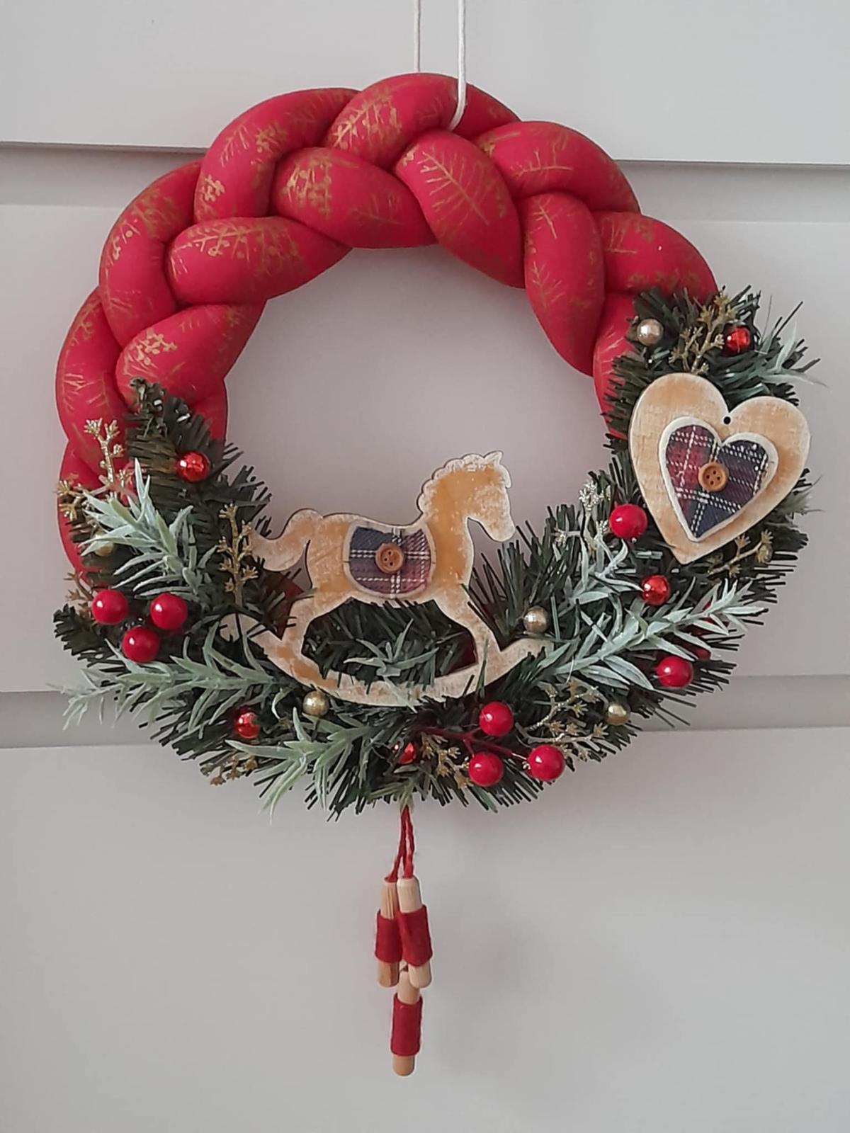 Predám adventný veniec červeno-zlatej farby. V pripade zaujmu viem vyrobit aj v inom farebnom prevedeni alebo ako veniec na dvere. Na dobierku neposielam.