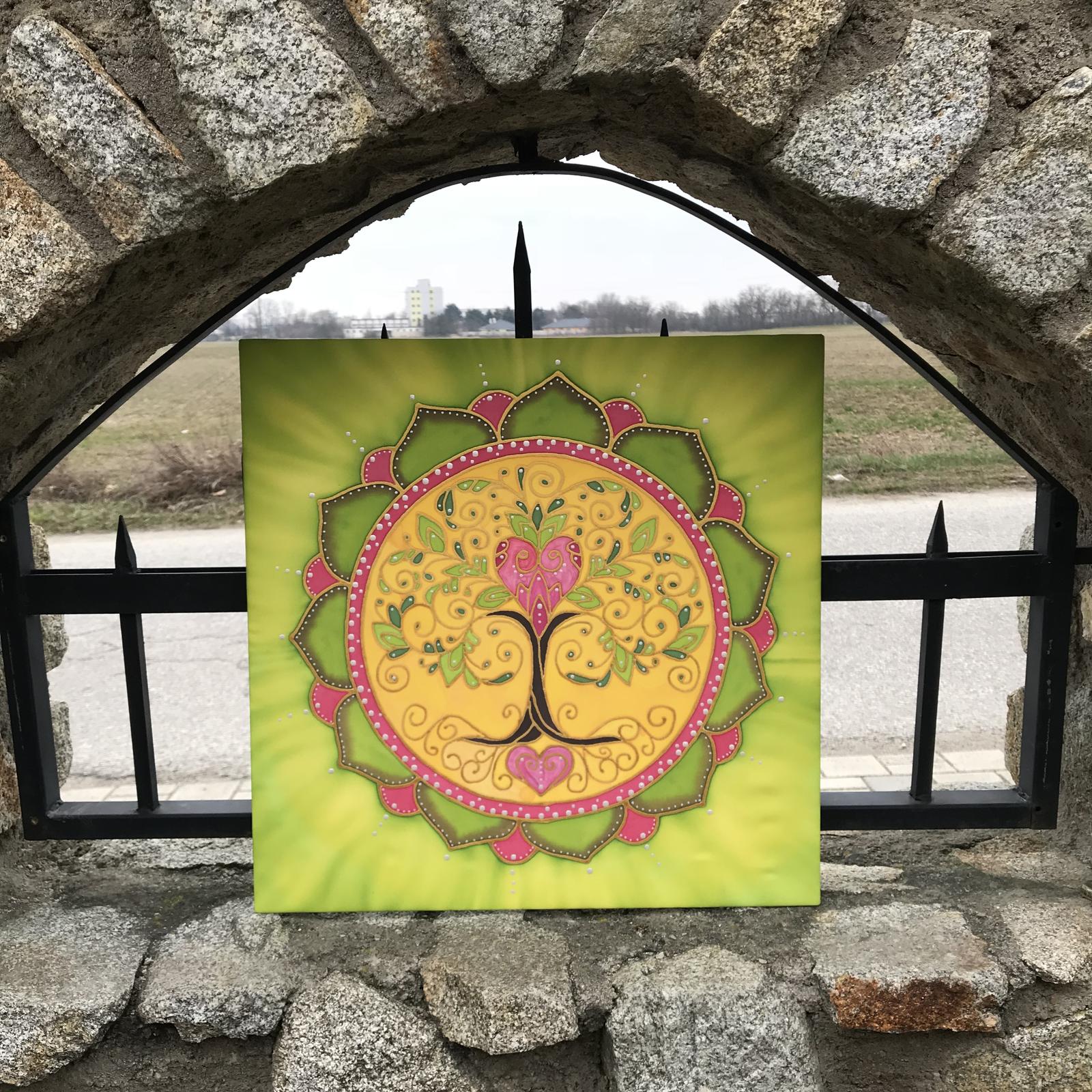Ručne malovaná strom života na hodvab.Velkost 41x41 cm s hacikom na zavesenie.Na objednávku. Postovne je 6,50 eur lebo musim poslat ako krehky balik.