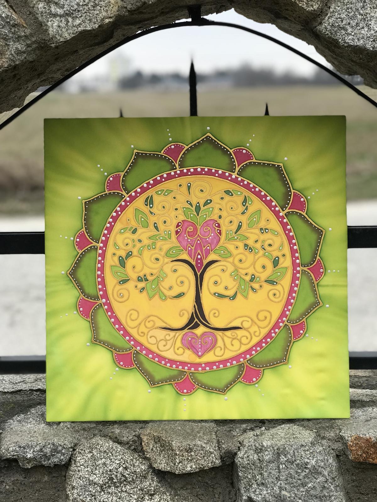 Ručne malovaná strom života na hodvab 41x41 cm