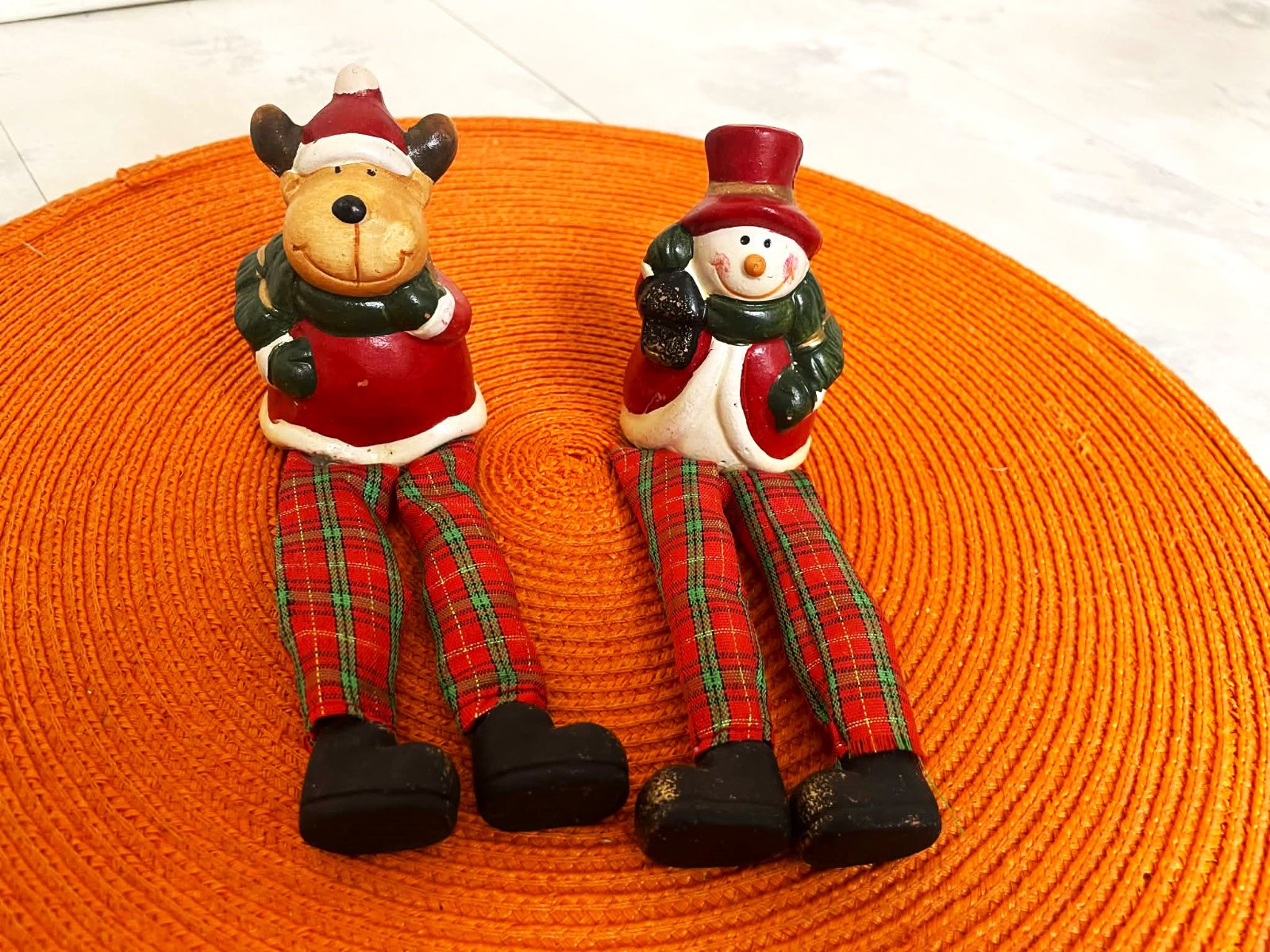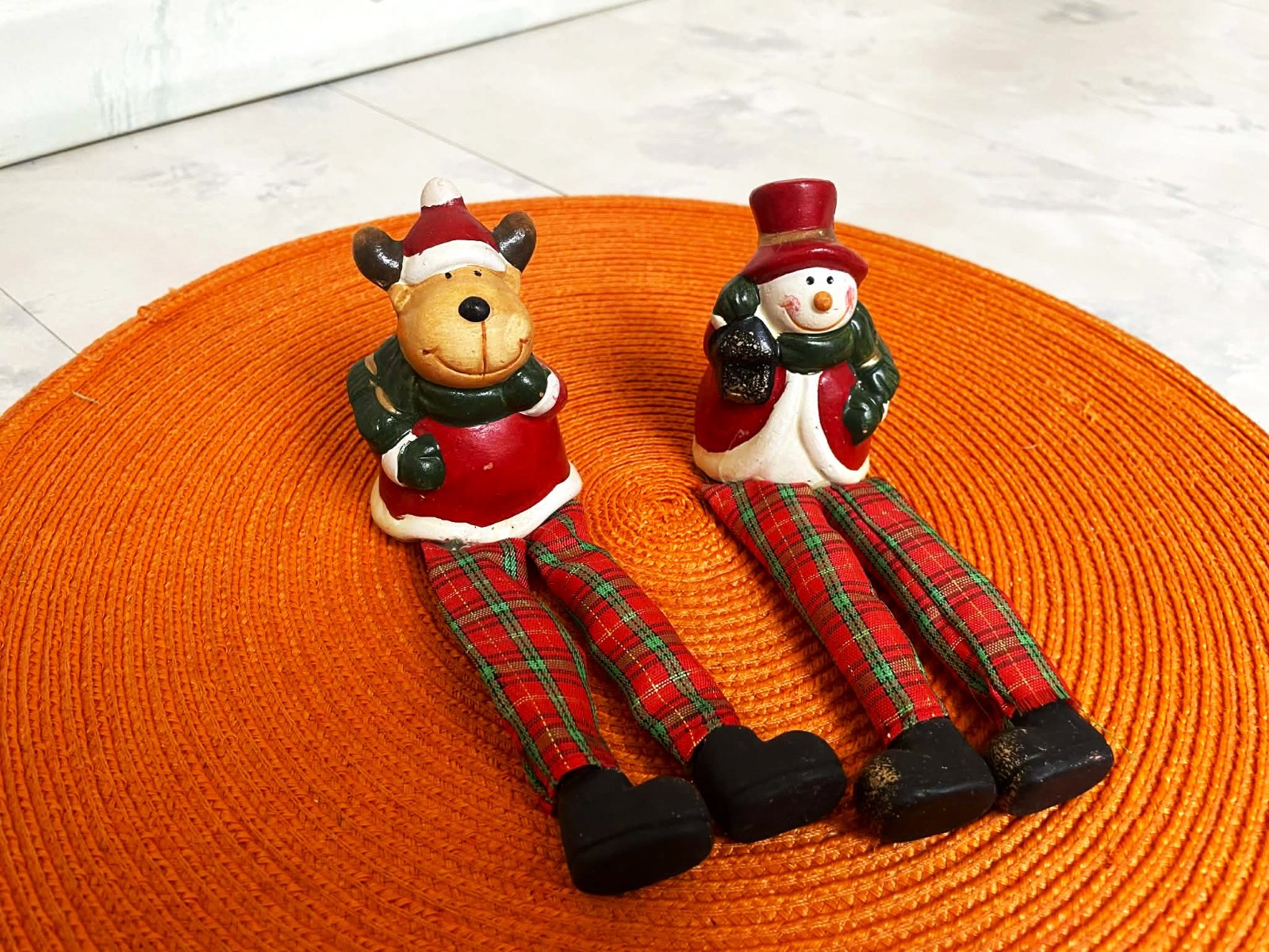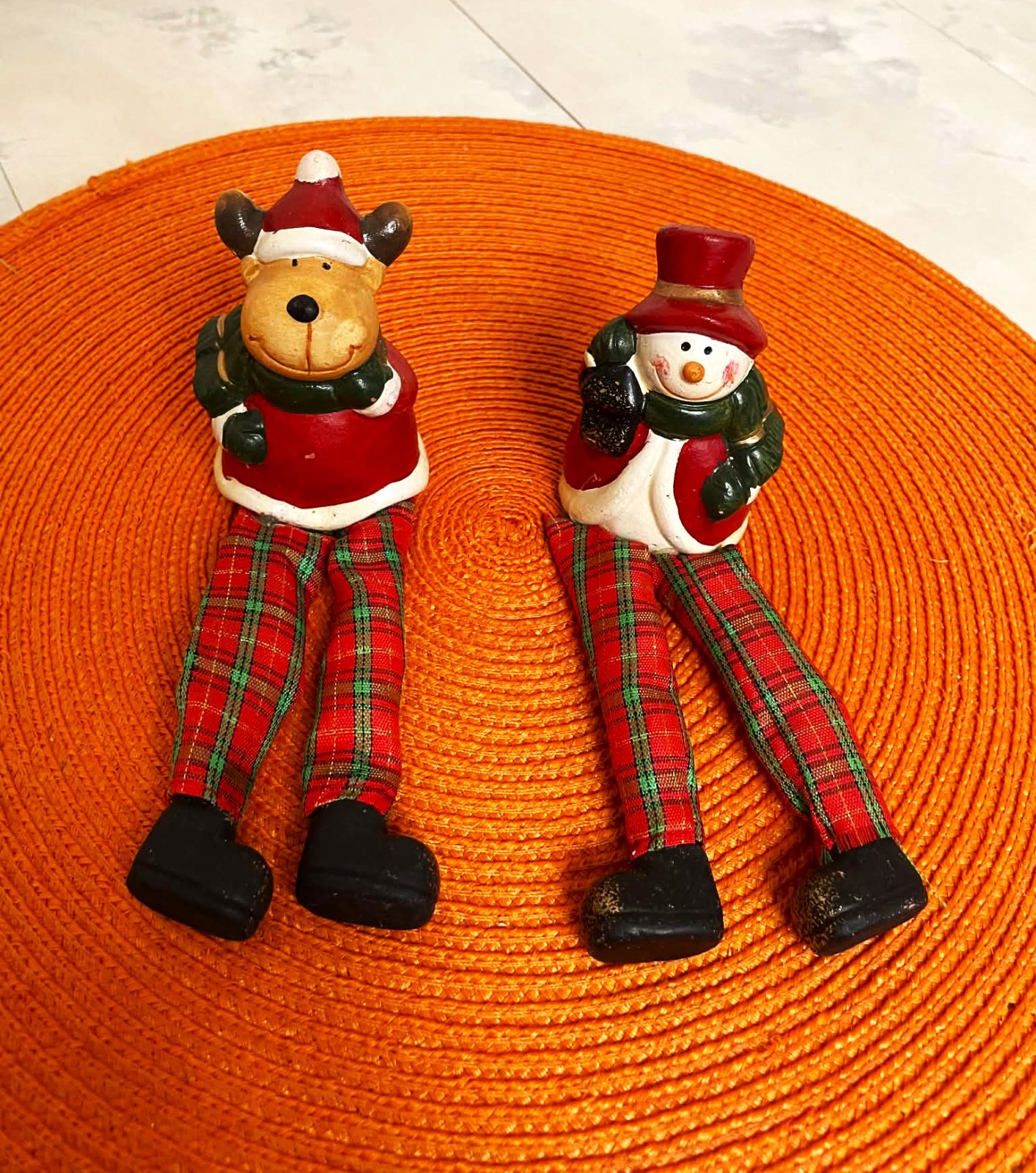 krásne dekorácie,použité ako dekorácia na 1 Vianoce, v top stave,vhodné na poličku - nohy sú látkové, trup je z kvalitnej keramiky,18 x 5 cm