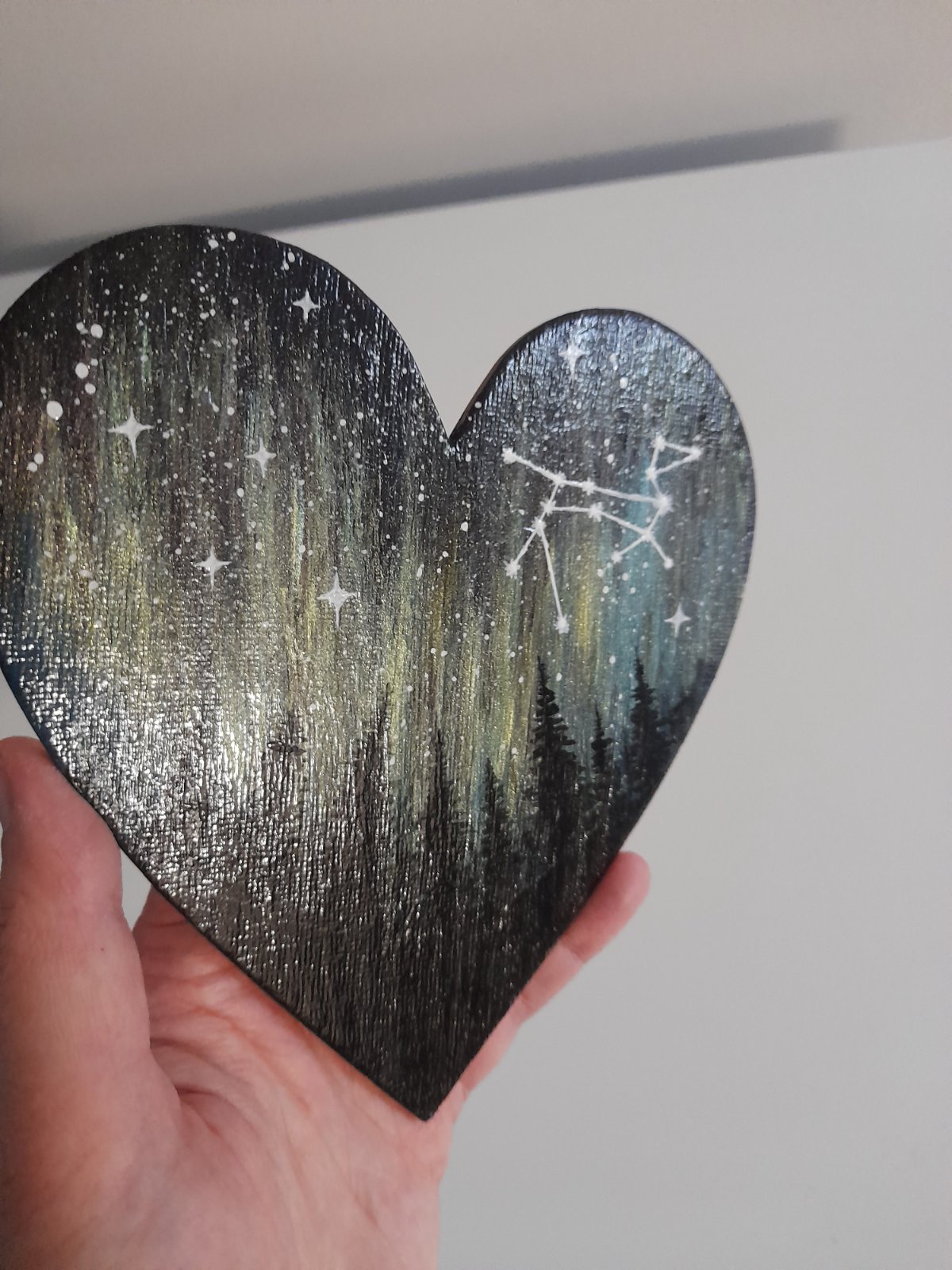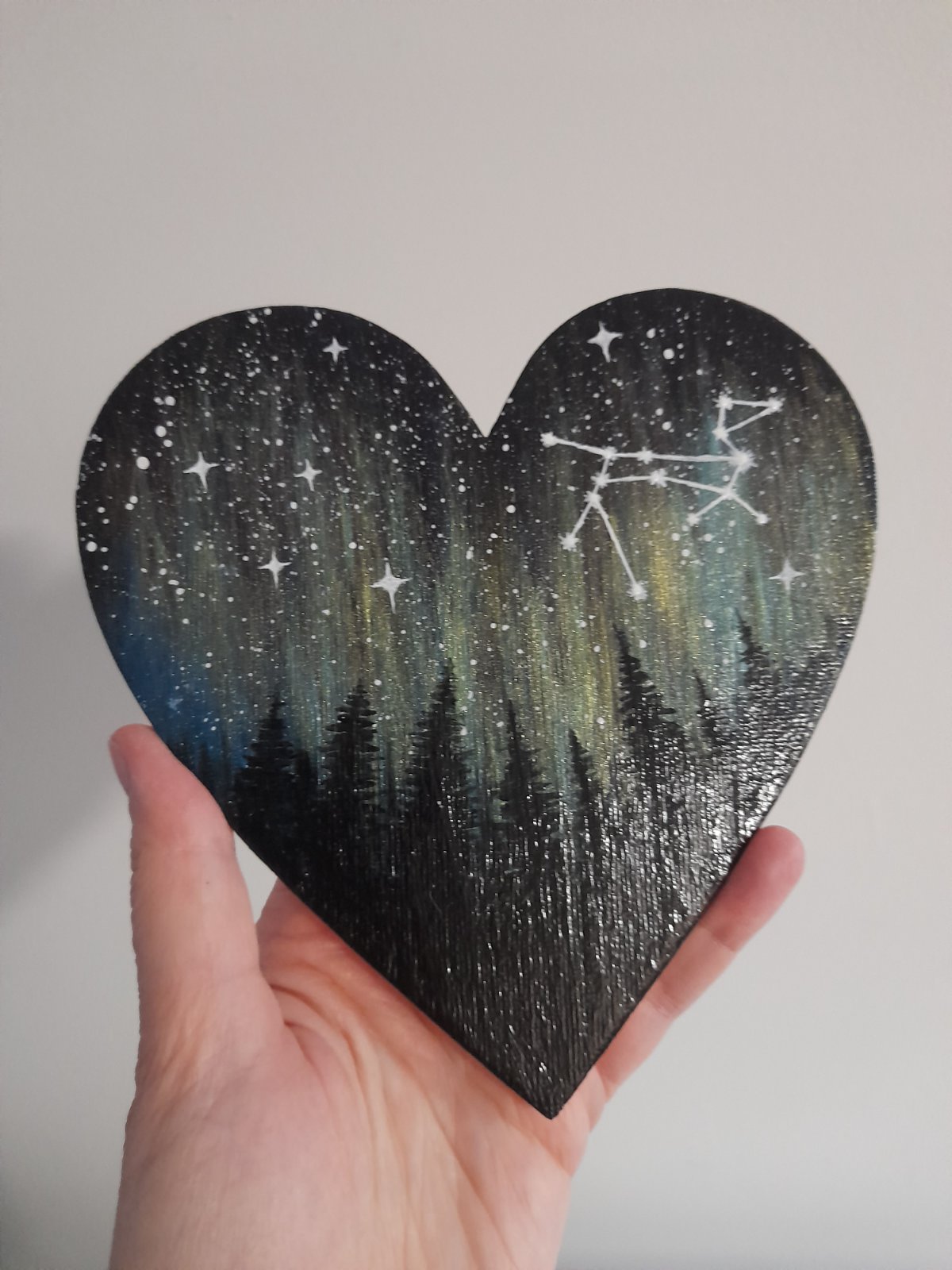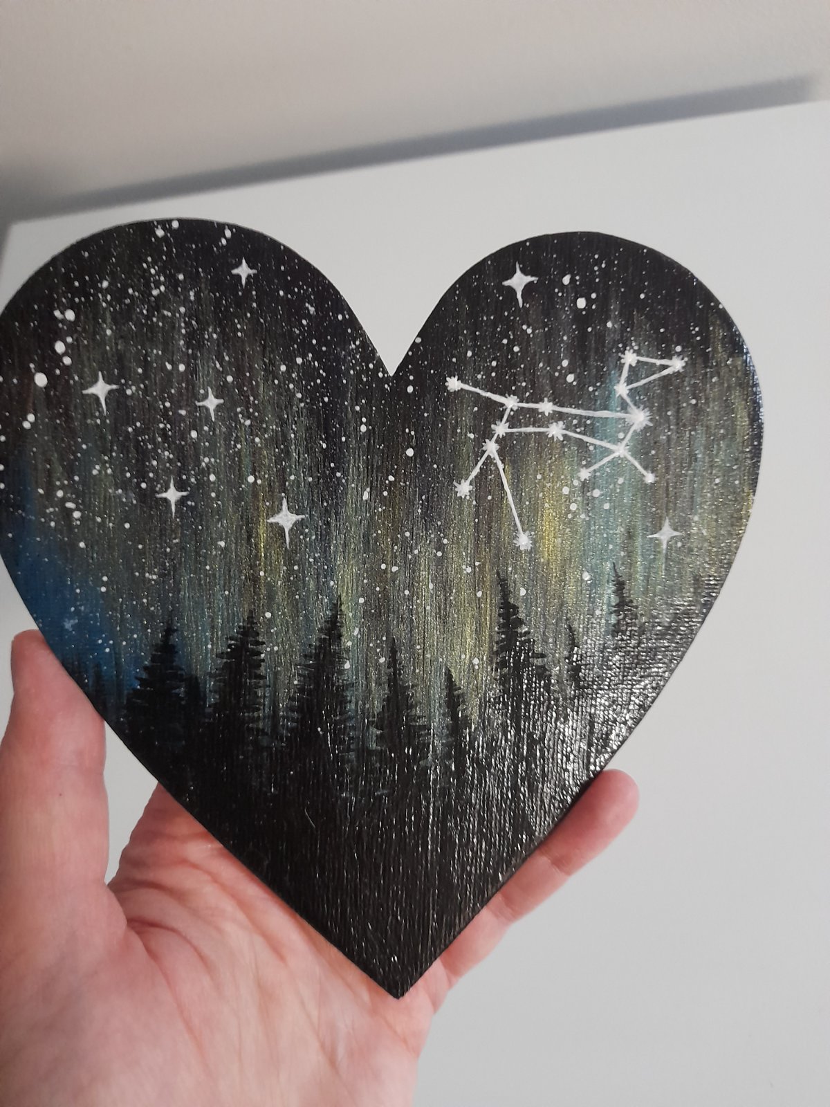 Akrylová maľba, polárna žiara, hviezdy, súhvezdie Canis Major