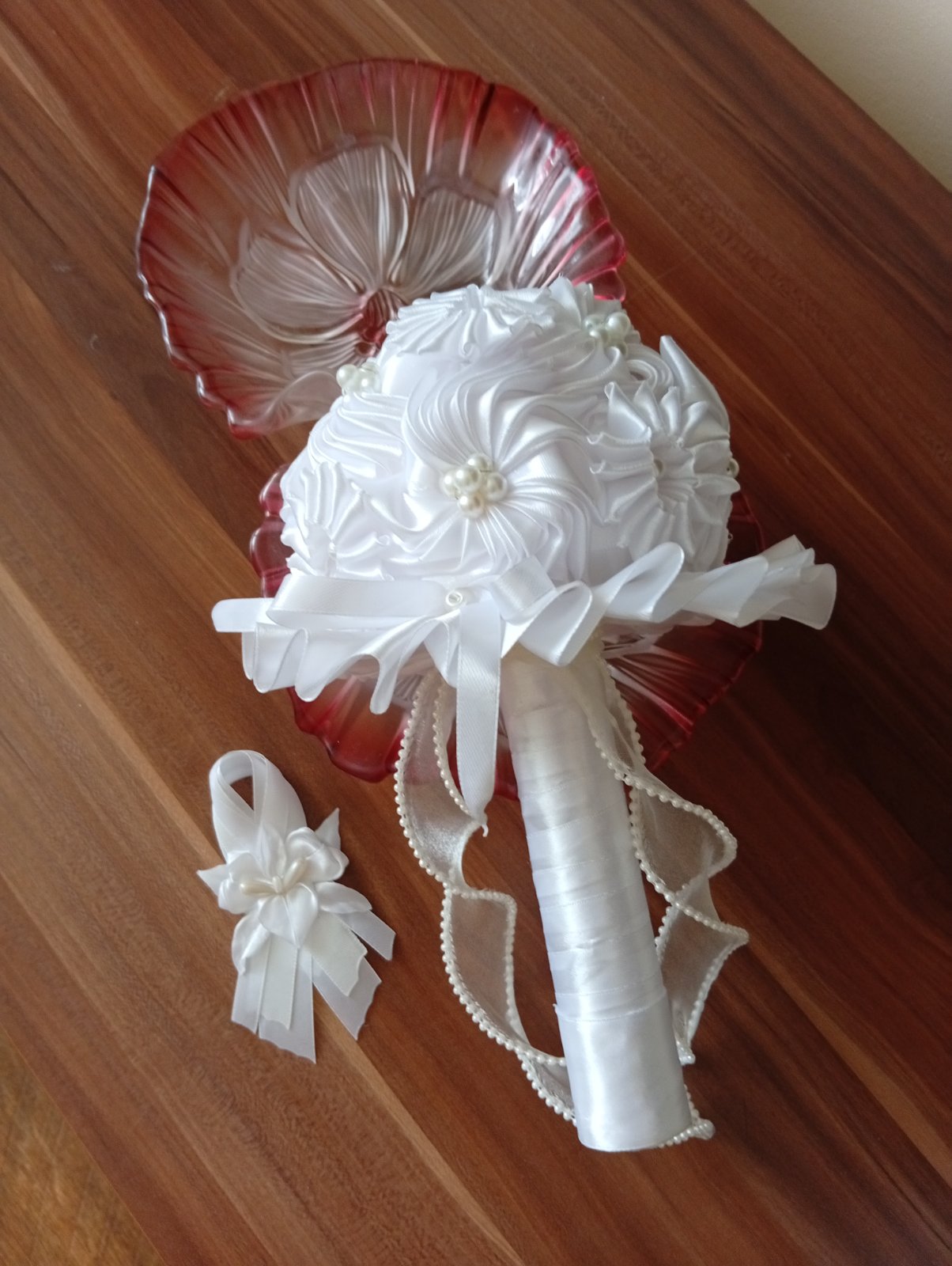 Ručné vyrobené zo satenovej stuhy ružičky a lístky. Cena plus poštovné.