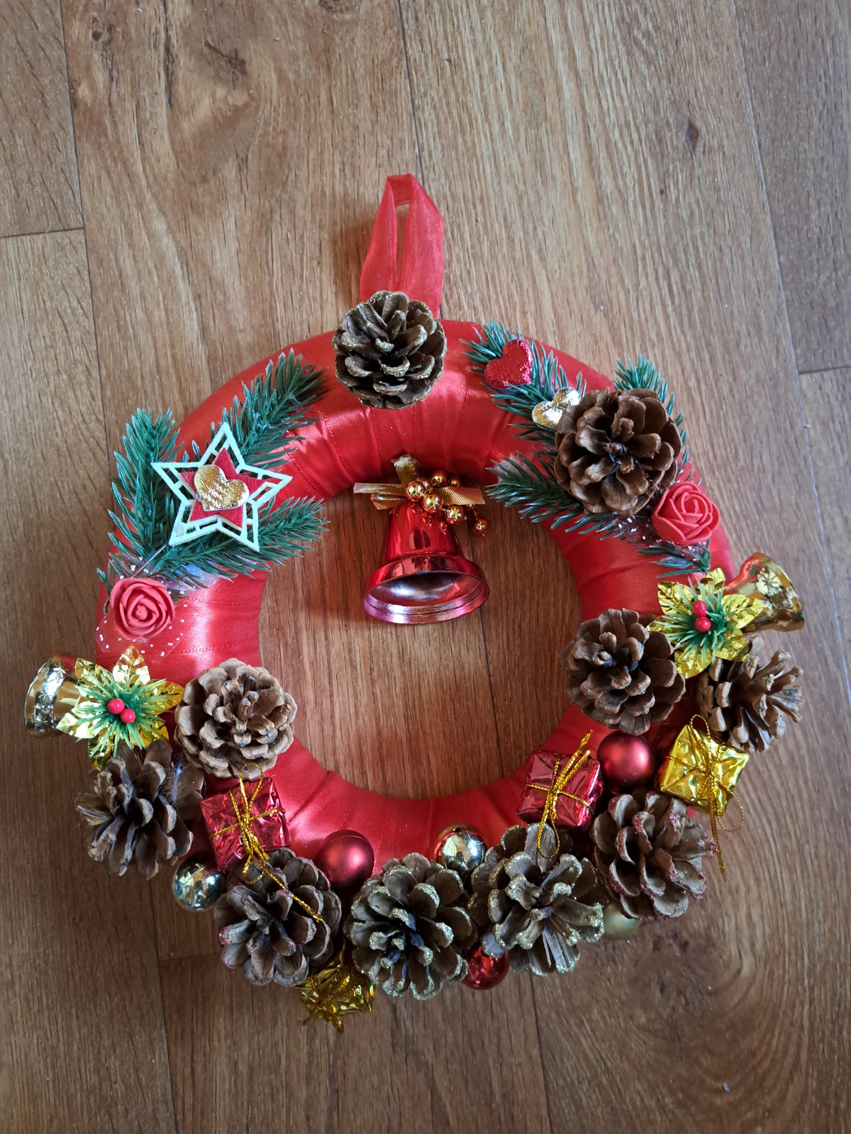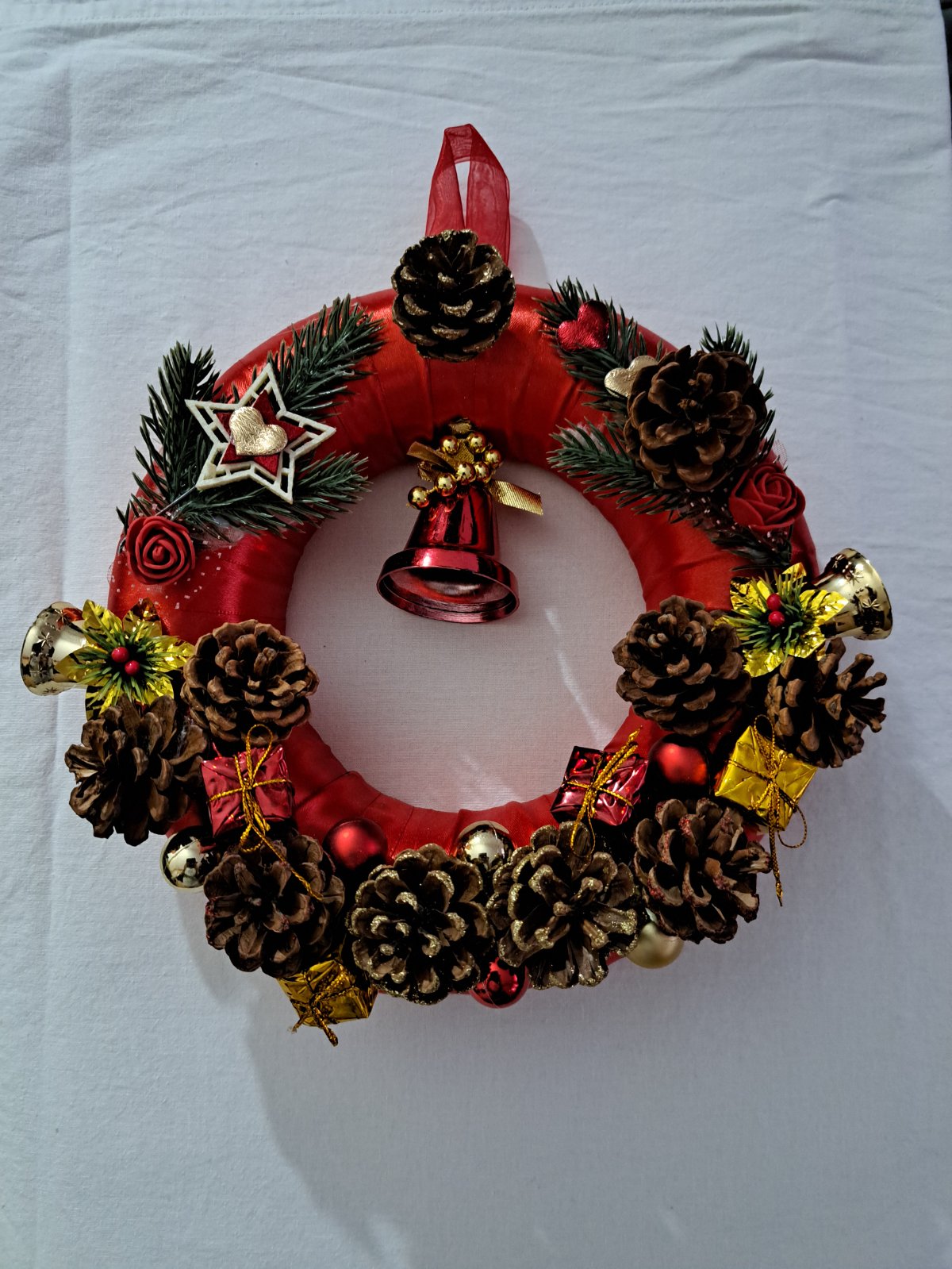 Predám adventný veniec červeno-zlatej farby. V pripade zaujmu viem vyrobit aj v inom farebnom prevedeni alebo ako veniec na dvere. Na dobierku neposielam.