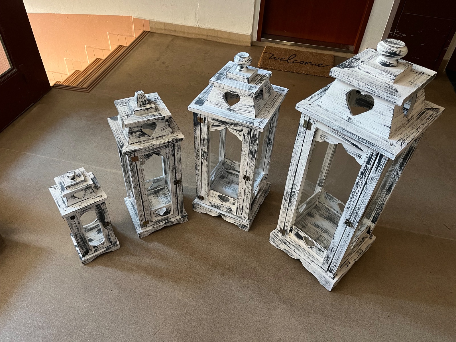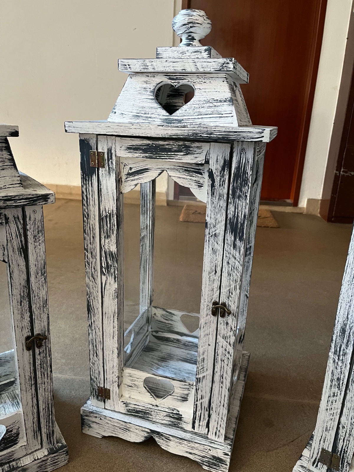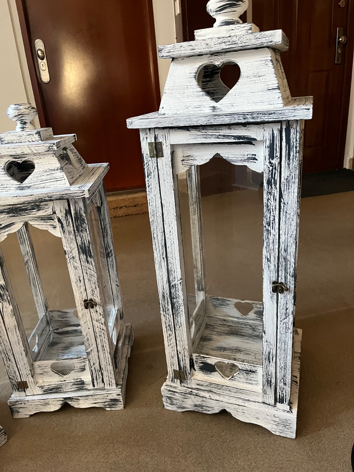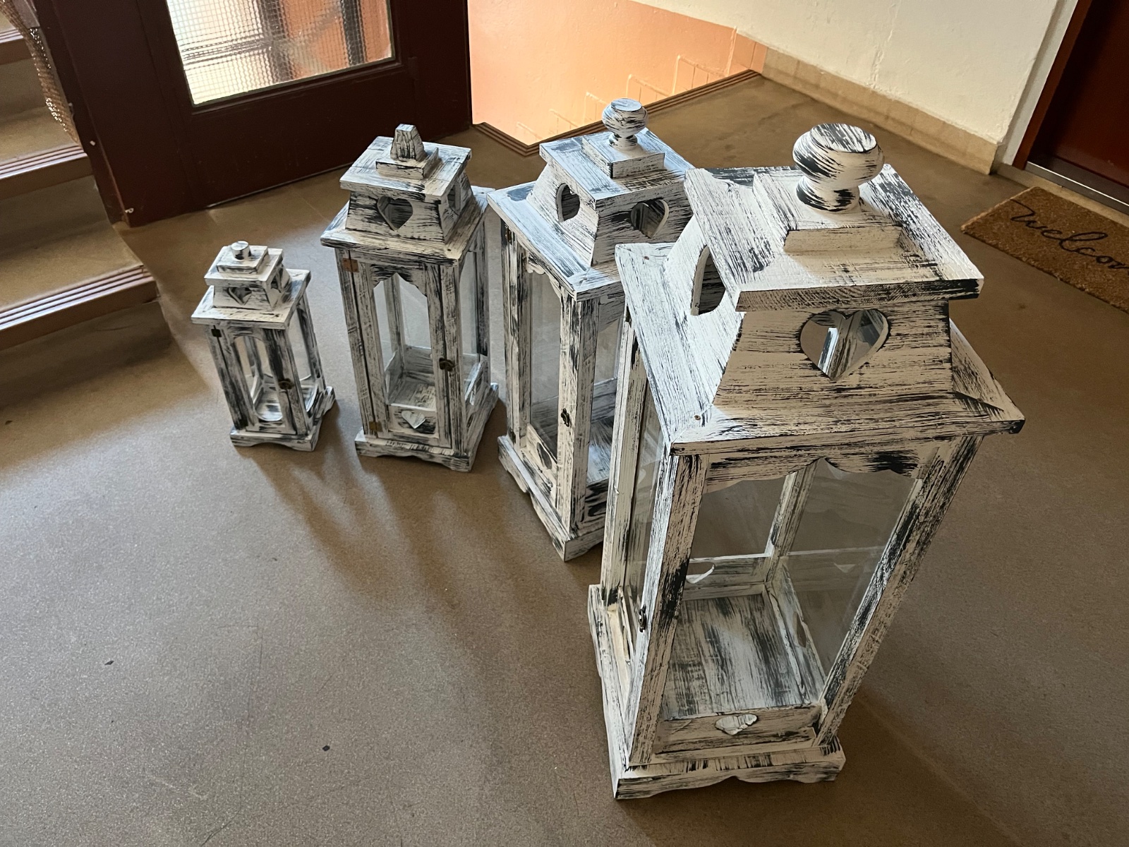 Predám 4 ks drevených lucerien , drevo, sklo, kovové otvaranie , bez poškodenia, len vystavené