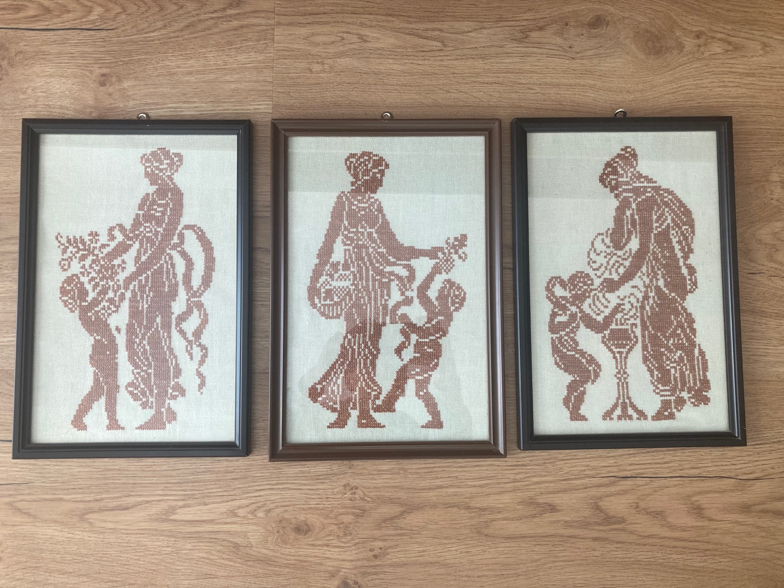 3 vyšívané obrazy rozmer šírka 24cm výška 35cm 1kus 10eur
