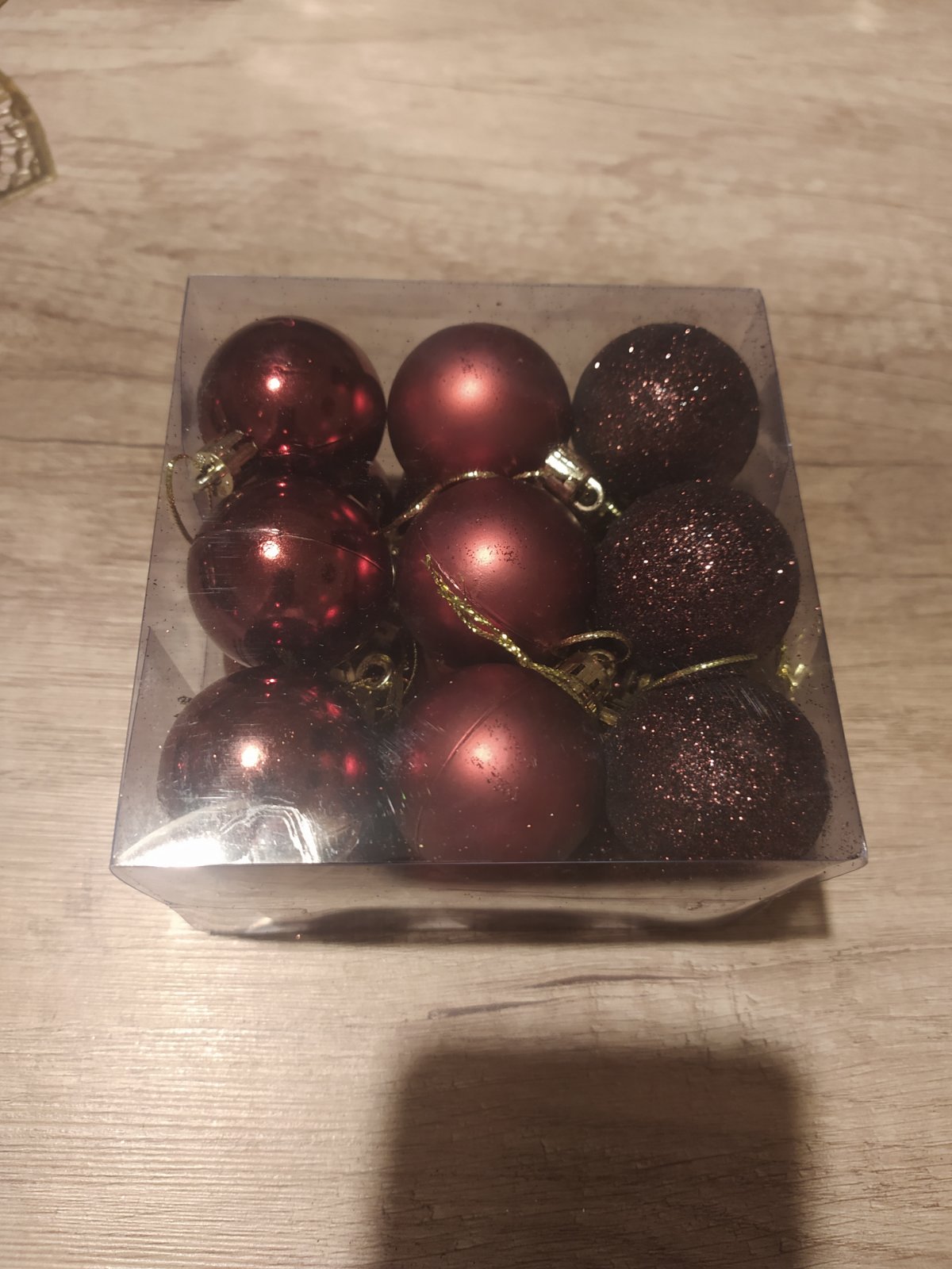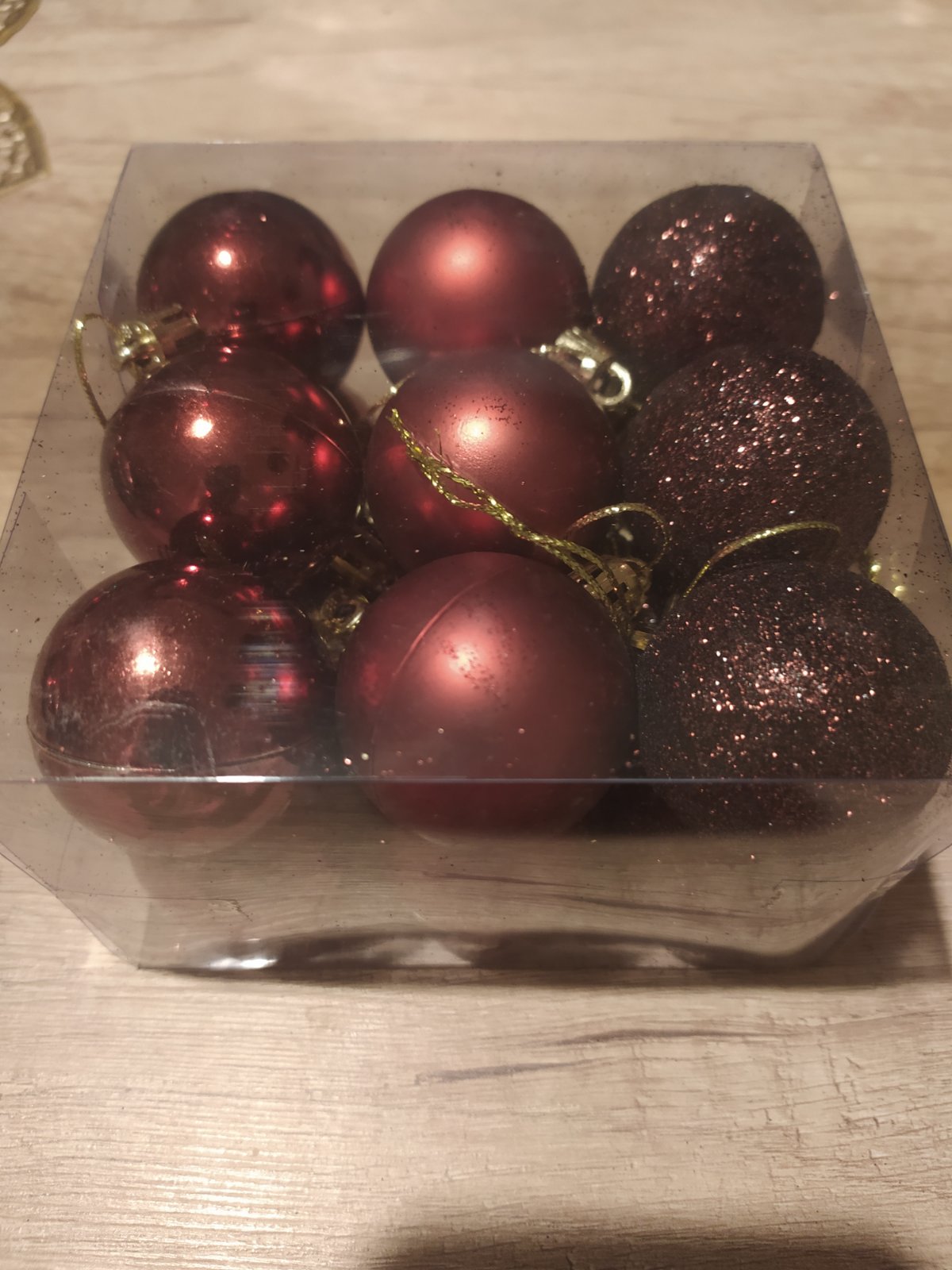 18 ks vianočných guli,v odtieni tmavo hnedej ,lesklé matné a ligotave ,veľ 4*4cm