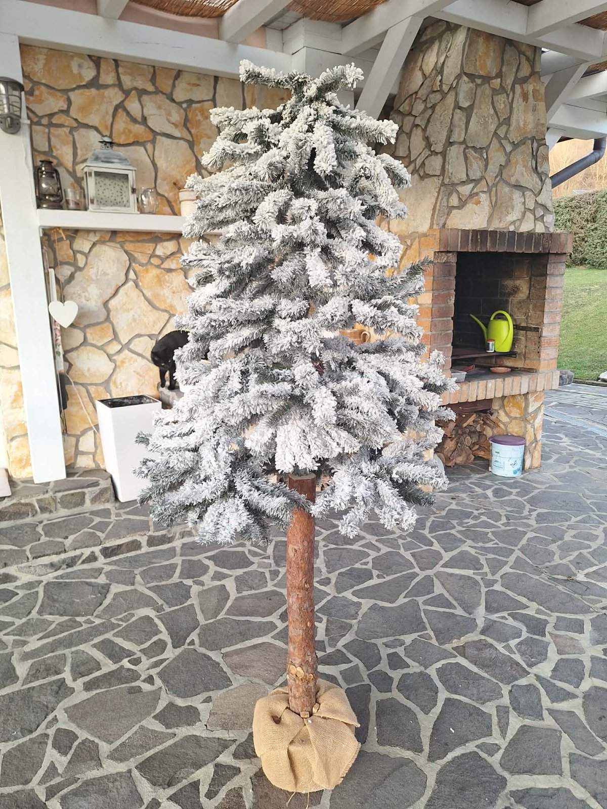 vianočný, zasnežený stromček na drevenom kmeni, nepoužívaný, výška 180cm