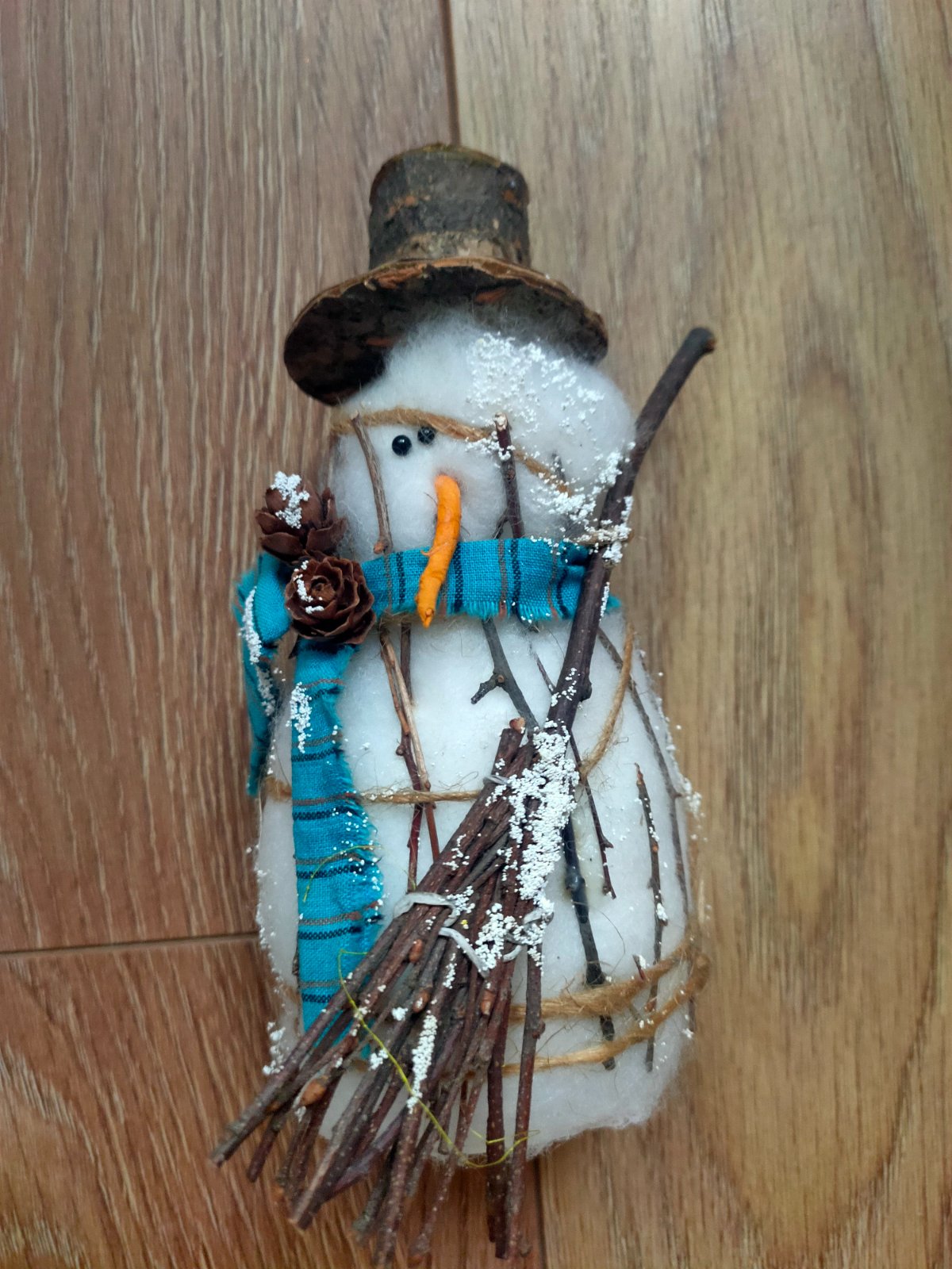 Predám minimálne používanú postavičku snehuliaka, materiál polystyrén obalený flisom, dekorácie na ňom sú z latky, prútia, klobúk z kôry stromu