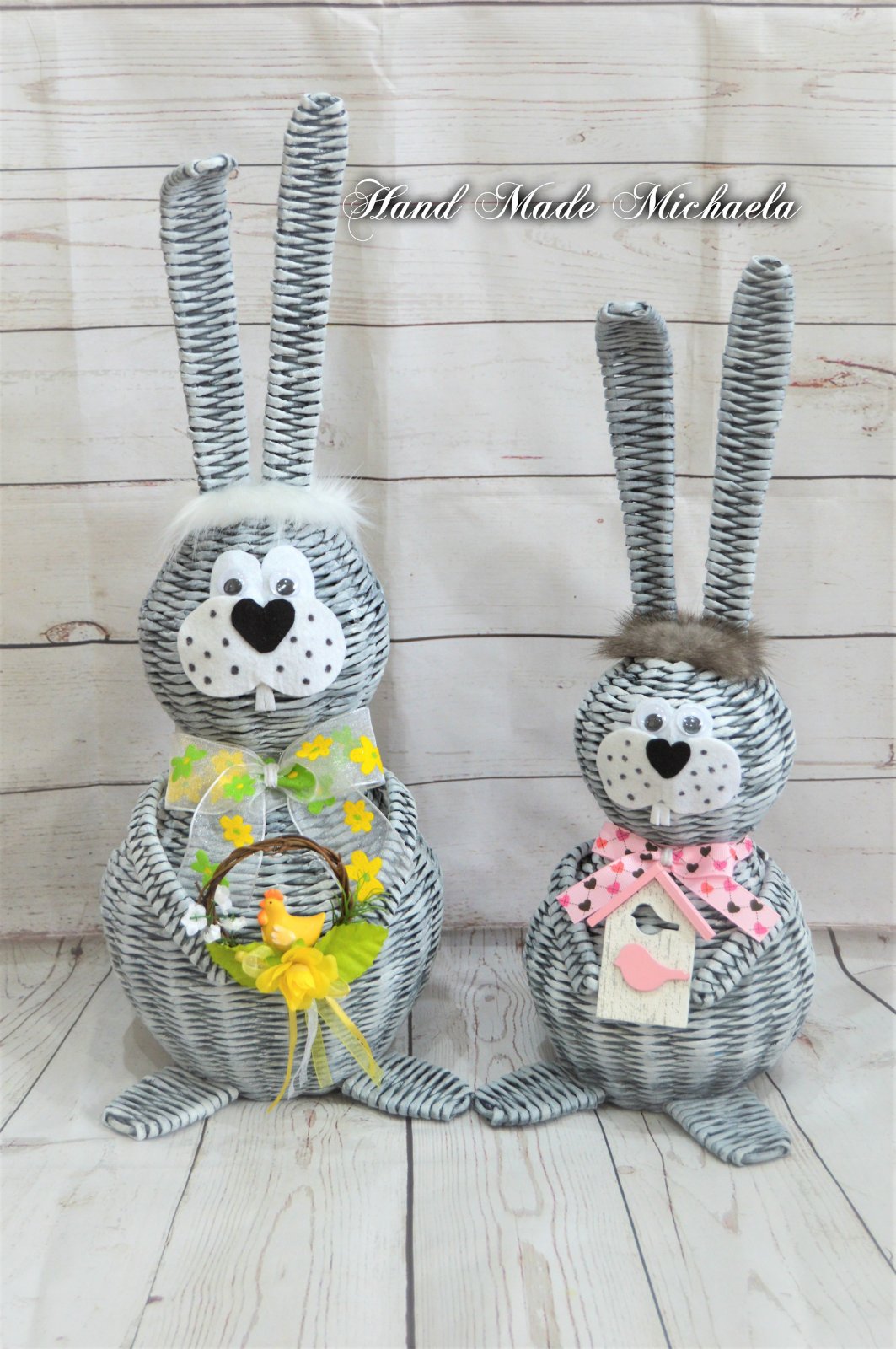 ručne pletené velkonočné dekorácie..zajko má výšku 49-50cm....vyrobím rôzne farby a velkosti....niečo mám skladom ale informujte sa o dostupnosti