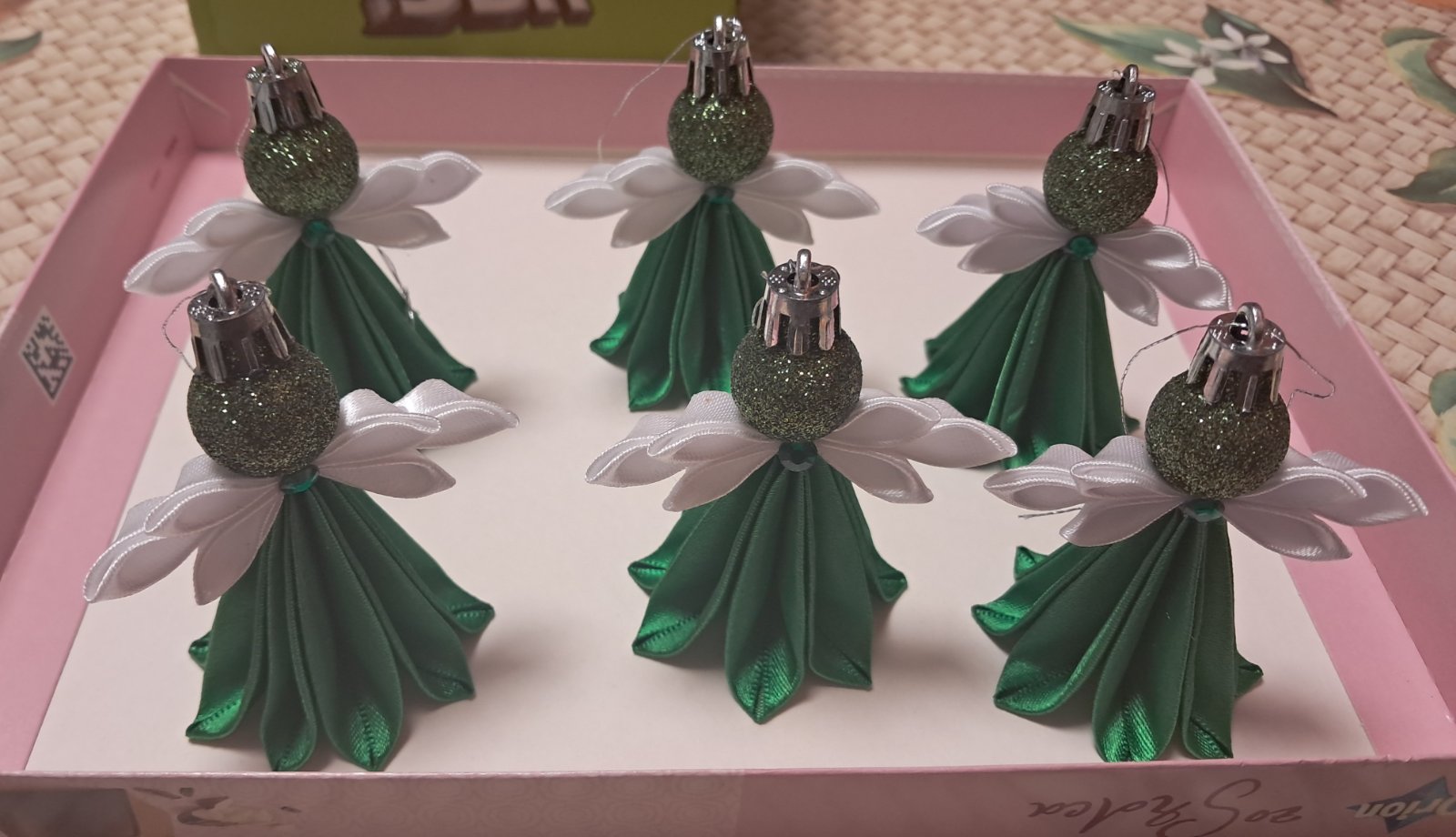 Vianocny anjel zo stuhy na stromcek,vyska 9cm
