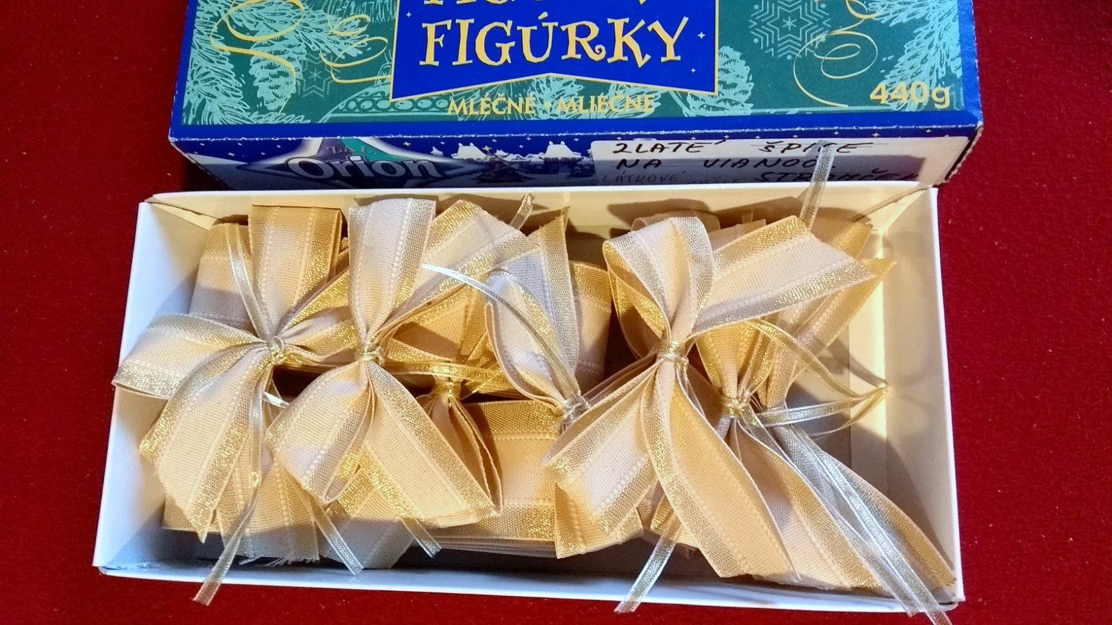 mašličky boli použité jeden krát na vianočný stromček, ale sú v top stave. Dajú sa použiť aj na vianočné aranžmány a najmä balenie darčekov...