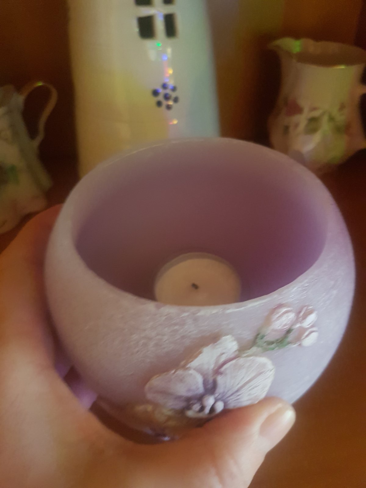 Ručné robený svietnik na čajovú sviečku formou falošného patchwork Cena 2,50 eur + poštovné